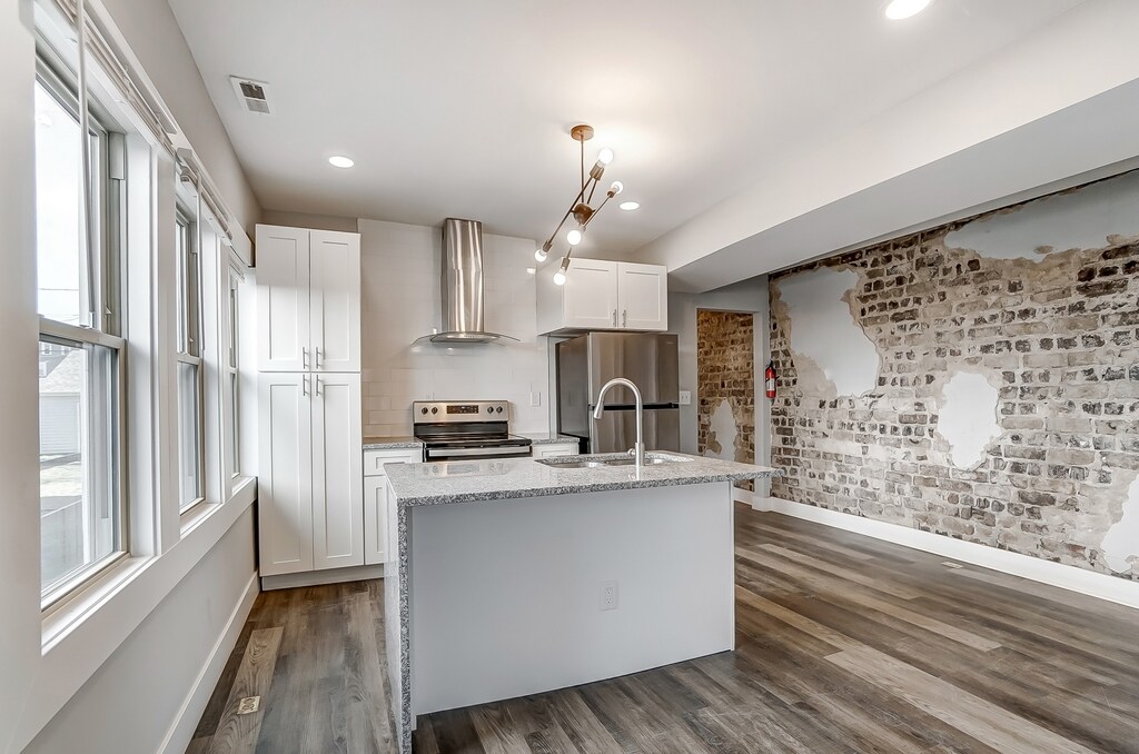 A beautifully renovated 2-bedroom, 1-bathroom apartment for rent in the desirable Southern Orchards neighborhood, ideally situated minutes from Nationwide Children's Hospital, German Village, and downtown. This charming unit offers nearly 1,100 square feet of bright and airy living space, and features exposed brick accents throughout the kitchen and hallway. Enjoy the convenience of in-unit laundry hookups, and a private 1,000 sqft basement, perfect for storage. This unit is also wired with AT&T fiber internet access. One dedicated off-street parking space is included, and ample street parking is available nearby. Tenant pays for electricity and a flat rate for water. Pets are permitted with an additional deposit, monthly fee, and signed addendum. No smoking is permitted. One year lease only.
