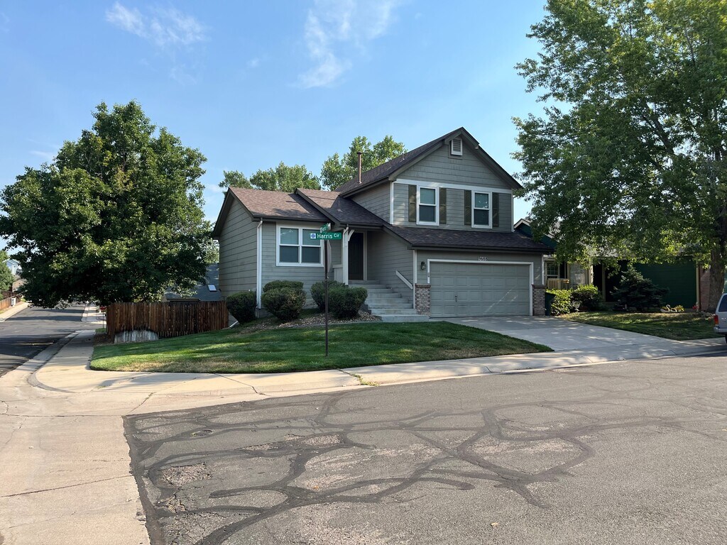 ENTIRE INTERIOR OF HOME PAINTED OCTOBER 2025; REFRESHED KITCHEN WITH NEW COUNTERS, LIGHTS AND SINK, PAINTED CUPBOARDS; MASTER BATH UPDATED OCTOBER 2025; HOME PRICED LOWER THAN COMPARABLE HOMES WITH OVER 2K SQUARE FEET OF LIVING SPACE & LAWN SERVICE PROVIDED ($200/MONTHLY VALUE) 3 Bedroom, 2 bath home, 2,032 square feet. Corner lot with a large yard (lawn mowing provided), and sprinkler system. 10 miles North of downtown and just over 1 mile from the light rail station at Colorado & 104th. Brand new 10 x 20 foot trex deck. Furnace and A/C unit replaced 2024 & new water heater in 2025. Two car garage with 100 feet of shelving. Gas fireplace in family room. Very active and responsive owner