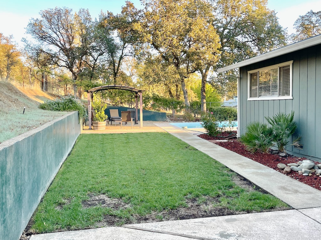 **COUNTRY ESTATE WITH POOL ON 2.5 ACRES - SOLAR POWERED!** Your own private paradise on 2.5 acres in desirable Palo Cedro. This exceptional rental offers spacious living, a private pool, and SOLAR POWER that has provided zero electric bills for years with typical household usage. **SPACIOUS LIVING - 3 BEDROOMS | 2 BATHROOMS | 1,424 SQ FT** Updated kitchen with quartz countertops and breakfast bar. Vaulted wood ceiling den/family room. Premium luxury vinyl plank flooring throughout. Wood-burning stove for cozy winters. Single-story main living for easy accessibility. **SOLAR POWERED - MINIMAL TO NO ELECTRIC BILLS!** Solar power system installed - current owners have had **$0 electric bills for 3+ years** with typical family usage including pool, AC, and all appliances. Significant utility savings compared to standard rentals. Run your home efficiently without worrying about expensive summer bills. **OUTDOOR PARADISE** Private pool with LED lighting and patio areas - perfect for summer entertaining and relaxation. Large fenced vegetable garden with raised beds ready for your organic garden. Cross-fenced pastures ready for your livestock. Mature native oak trees throughout providing shade and natural beauty. Full 2.5 acres of usable space. **PRIME PALO CEDRO LOCATION** A-rated Foothill High School within walking distance - excellent for families! Shasta Lake just 17 minutes for boating, fishing, and water sports. Championship golf 6 minutes at Grape Ranch. Lassen Volcanic National Park 47 minutes for hiking and winter sports. Grocery stores 4-6 minutes. Costco and major shopping 18 minutes. Downtown Redding 17 minutes. Mercy Medical and Shasta Regional hospitals 13-20 minutes. Perfect balance of peaceful country living with convenient access to everything you need. **MODERN AMENITIES** High-speed Spectrum internet available - essential for remote work and rare in rural settings! Paved road access. Reliable Bella Vista Water District. Large windows with natural light and beautiful views. **PERFECT FOR** Families wanting acreage while staying in top-rated schools. Remote workers needing reliable internet and home office space. Horse owners seeking turnkey pastures. Multi-generational families needing separate living quarters. Outdoor enthusiasts wanting lake and mountain access. Anyone seeking country lifestyle with modern conveniences.