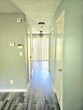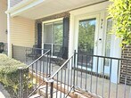 You'll love this chic 2 bedroom, 1.5 bath stylishly appointed home! Updated faux wood LVP flooring spans the main level, complemented by elegant lighting fixtures throughout that add a modern touch. The kitchen boasts a breakfast bar, tile backsplash, and sleek Corian countertops. The upstairs living area has a full bath featuring tiled floors, tile backsplash, a marble vanity and modern nickel-plated plumbing fixtures. The exterior consists of a spacious and relaxing covered porch to enjoy outdoor comfort, as well as an exterior utility closet in the rear for extra storage. Community pool for enjoyment of all the lucky residents of this beautiful community.