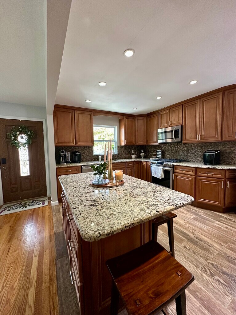 A must-see! Welcome home to this move-in ready 3-bedroom, 2-bath ranch, recently renovated and located in the heart of Colonia. As soon as you walk in, you'll love the open-concept layout and the natural light that fills the spacious living room. This home features hardwood floors throughout, a newer kitchen with granite countertops, a beautiful center island, plenty of cabinet space, and ample storage throughout. Three generously sized bedrooms and a full bathroom complete the first floor. The fully finished basement offers a second kitchen, a large family or recreation room, a full bathroom, a laundry area, and a storage room. Step outside to a large fenced backyard that feels like your own private park. The paved driveway accommodates up to four cars. Ideally located near shopping, NYC transportation, and major highways, this home truly has it all. Come see everything it has to offer!