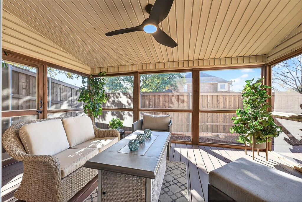 This stunning tree-lined duplex in the Preston Hollow area has been fully remodeled with care and attention to every detail. Inside, the layout feels both open and functional, starting with a formal living and dining space that comfortably seats six. The kitchen is designed to be both stylish and practical, featuring a quartz island, counter seating, a large stainless steel sink, and a full butler's pantry. It opens into a cozy den with a flat-screen TV, gas fireplace, and direct access to a screened-in deck overlooking the backyard. The home includes three bedrooms, each with its own bathroom. The primary suite features a king bed, a walk-in closet, a flat-screen TV, and a modern bath with double vanities, a walk-in shower, and a separate toilet closet. One guest room features a queen bed and an en-suite bathroom with a large soaking tub, while the other can be customized to accommodate a bed, bunk beds, a sofa, or converted into a workout space or office. The third en-suite includes a shower and updated quartz finishes. The fourth bathroom is located outside next to the pool, making it easy to rinse off after a swim. The backyard features a full-size pool and a covered, screened-in porch deck for relaxing or entertaining. Other amenities include a fully equipped laundry room with a GE smart front-load washer/dryer, built-in storage, a rear-entry two-car garage, and quartz countertops throughout. Furniture and housewares are included, and furnished photos will be available soon. Weekly lawn and pool service, high-speed WiFi, and a security system are all part of the package. Just minutes from top private schools, hospitals, major highways, and NorthPark Center. Lease now!