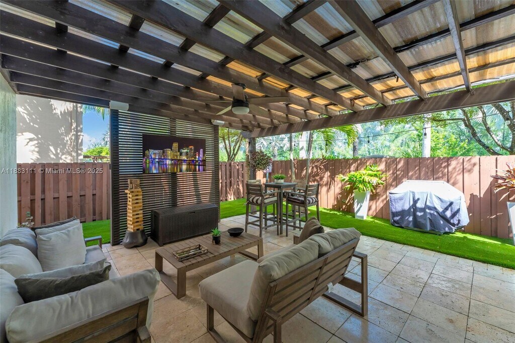 Exquisite spacious corner home at the gated community of Grand Bay Estates. Elegant 2-story residence with 4,159 SF, offering comfort, high ceilings, plenty of natural light, 5-beds, 5-remodeled baths, walk-in closets. Master bath with double shower & tub; White porcelain flooring on first level & laminate wood on the second. Living room, florida room, formal dining and a thoughtfully designed kitchen, equipped with stainless steel appliances, ample cabinetry and big island. Charming outdoor patio with artificial grass, perfect for gatherings and barbecues, 2-car garage with an electric car charger, and 3 cars in driveway + extra guest parking infront.