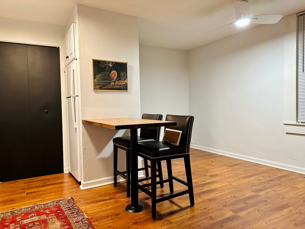 Apartment Features: Private deck with tree-lined views and outdoor space. Refreshed kitchen and bathroom with updated counters, fixtures, and subway tile. Built-in butcher-block bar perfect for dining or a home workspace. Ceiling fans plus central heating and air conditioning. Laundry room and extra storage area designated to this unit. Quiet, well-maintained building. Lease Terms: Rent $1,495/month. Security deposit $1,495. Pet deposit $500 non-refundable per pet. Monthly pet rent $25 per pet (pending approval). Minimum 12-month lease; flexible move-in date. Tenant must carry renter's insurance. Street parking available. Do not disturb current occupant showings by appointment only.