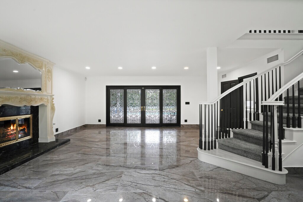 Beautiful Patrician Estate home offers a harmonious blend of luxury, comfort, and functionality. With new flooring, fresh paint, and meticulous attention to detail, this home is truly a standout. As you step inside, you're greeted by a spacious formal living room featuring a stunning custom marble fireplace and a sweeping staircase that adds an air of elegance. The heart of the home is the kitchen, which seamlessly opens to the family room, creating a perfect flow for everyday living and entertaining. The family room boasts vaulted ceilings, a large brick fireplace, and direct access to outdoor patio, ideal for hosting gatherings or enjoying peaceful moments outdoors. The home also includes a spacious dining room, main-level office/bedroom—perfect for flexible living arrangements, laundry room and a guest bath. Upstairs, the private primary suite offers a serene retreat, complete with a custom fireplace, a walk-in closet, and a spa-like en suite bathroom with dual sinks, a soaking tub, and a separate shower. For those who love outdoor living, the large sun/lounge room opens to a private deck overlooking the backyard, where you’ll find a tranquil pool—perfect for relaxation. Additionally, upstairs you will find 3 bedrooms and a generous size bathroom with dual sink and shower. Step outside for a full relaxation and leisure, enjoy the garden and lash grassy area. The side yard includes a gated area with ample space for RV or additional parking. Conveniently located near by shopping, dining, and with close proximity to CSUN. This home offers the perfect combination of privacy, style, and convenience. Don’t miss the opportunity to experience this exceptional property—it’s a must-see!