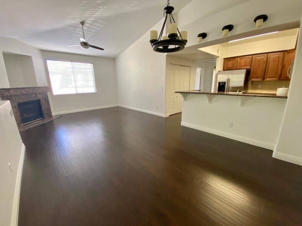 Stunning Summerlin upgraded condo in a gated community. Newly remodeled with contemporary custom everything! Professionally designed upstairs corner unit with vaulted ceilings and fans in every room. Beautiful rich laminate wood floors with stone tile in the bathrooms. Kitchen has high end stone countertops, tile backsplash, raised paneled and cabinetry. Stainless steel appliances and high efficiency washer and dryer. Dual sinks in the primary with a large garden tub and HUGE walk-in closet with built-in wall safe. Private balcony, your own 1 car attached garage with plenty of storage, and it's all just a few steps away from the community pool, spa, and clubhouse with gym. Welcome home! Owner pays HOA, water, trash, sewer. Tenant pays power and gas. Minimum 650 FICO score, no evictions or rental collections accounts, good rental history, no criminal record. ***Lease Terms: Minimum 12-month lease $1,695 month Move in: First month's rent (prorated) plus security deposit: $3,390 Credit Check: $50 per adult due with application or apply online Non-Refundable Pet Fee: no cats; small-medium size dogs only $500 per dog (one-time fee no monthly pet rent) Cleaning Fee: $400 non-refundable