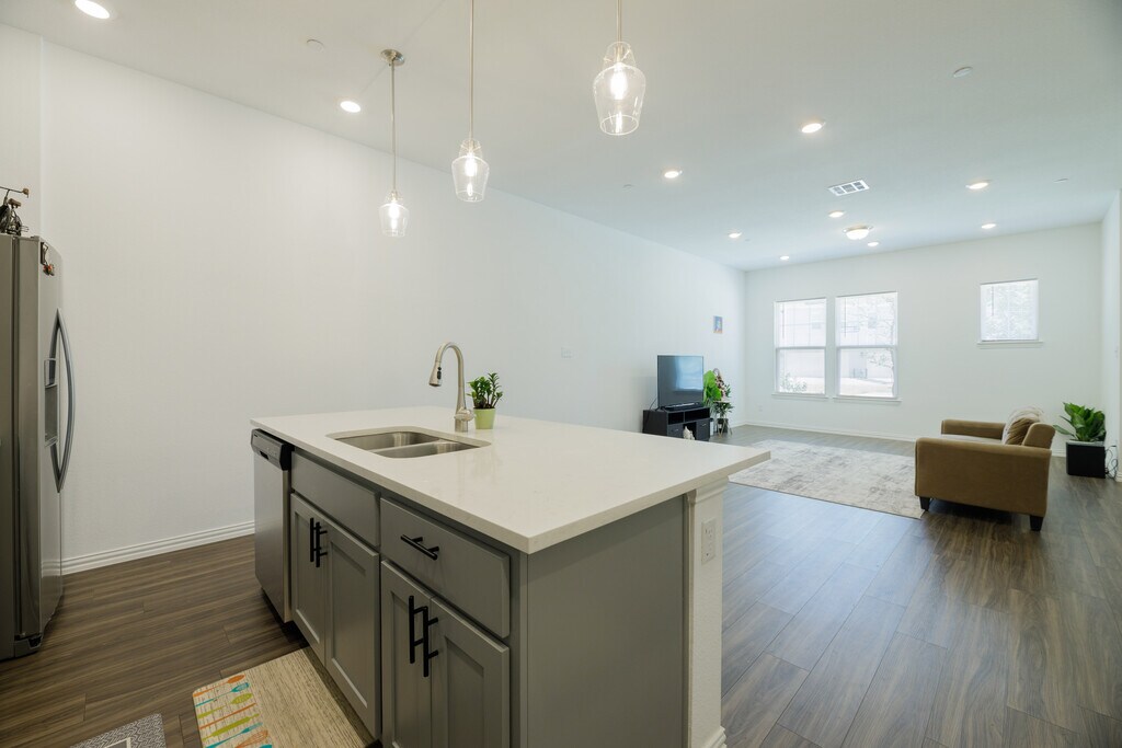 Brand New townhome for lease near Las Colinas 13 miles to Dallas, near DFW Airport, HWY 635, PGBT 161, HWY 114, and 17 miles to Legacy West. This home features Energy Star Whirlpool stainless steel appliances, Maestro Quartz solid surface countertops, an undermount double bowl sink, gas cooktop, oven and microwave, 42-inch cabinets, ceramic tile backsplash, Moen faucet, and pendant lighting above the eat-in bar top island. Second-floor bedrooms and large loft area. Primary suite with Maestro Marble countertop double-sink vanity, ceramic tile shower with seat bench and glass surround, and walk-in closet. Smart home features Ring doorbell and upgrades.