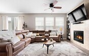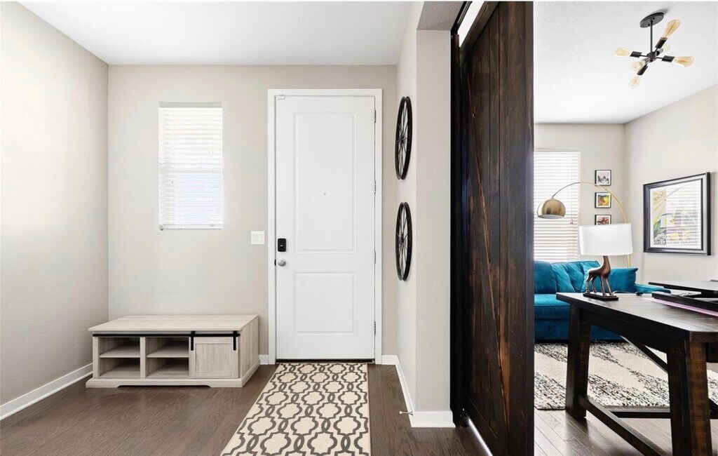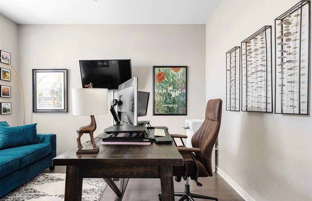 NOTE: This is not a fully furnished rental and pictures are staged. Thoughtful design and modern updates commingle throughout this elegant Meridian Village townhome. Illuminated in natural light, an open and spacious floorplan is enhanced by soaring ceilings and wood floors throughout the main level. The living room centers around a stylish tiled fireplace, while the kitchen shines with a large center island, sleek countertops, stainless steel appliances and a walk-in pantry. A private front office offers versatility, while the upstairs loft creates the perfect flex space for a media room or study. The primary suite features an oversized walk-in closet and a spa-like bath, complemented by the convenience of an upstairs laundry room. Outdoors, enjoy a private, fenced-in patio area or relax on the inviting front porch overlooking a greenbelt. With a two-car attached garage and a full unfinished basement with high ceilings, this residence provides abundant storage and future potential, all just moments from neighborhood parks, trails and open space. Utilities: Renters cover the cost of electricity, gas, water, and internet. Smoking Policy: This is a strictly smoke-free home no smoking or vaping is allowed anywhere on the property. Lease Terms: We prefer a 15-month lease, though a minimum of 12 months is required. Move-In Payments: Last month's rent will be collected at the time of lease signing. Pets: We love pets! Cats and small dogs (under 25 lbs) are welcome with a $50 monthly pet fee per pet.