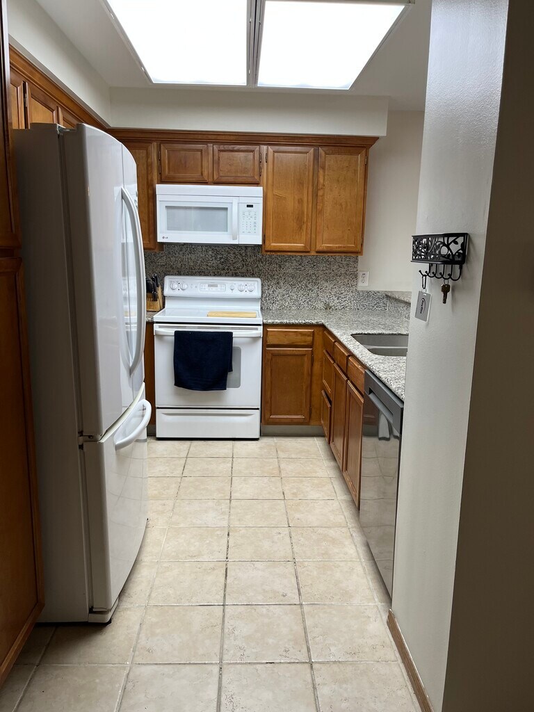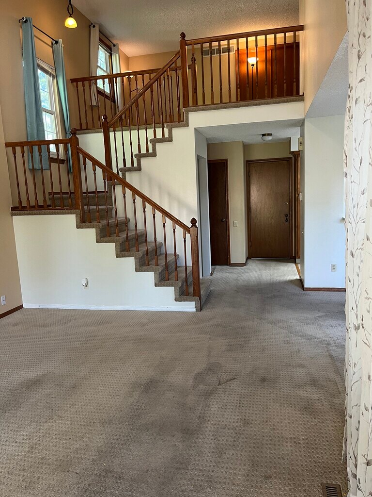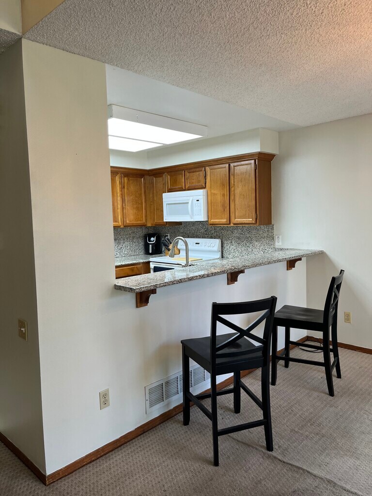 Cozy end-unit townhouse nestled in a quiet community. Spacious, open family/living room with vaulted ceilings. Kitchen with granite counters; eating bar adjacent to dining area that opens to private patio. Upstairs loft with potential use as office space, play room, or whatever you want. Primary bedroom with ensuite bath and walk-in closet. Second bedroom upstairs with adjacent bath; updated paint and flooring. Basement has private bedroom, open room and private bath; new carpet and paint. In-unit washer/dryer plus storage space also in basement. Spacious 2-car garage and additional free parking in complex. Residents have access to large pool, tennis/pickleball courts in-season, and clubhouse. Pets considered on case-by-case basis with appropriate pet fee. Rent includes trash removal, water & sewer, snow removal (excluding front steps).