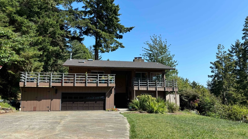 Property Id: 1388022 Beautiful mid century modern home with floor to ceiling windows, 2 living areas, 2 decks and expansive views and private property located above Baywood Golf Course on Buttermilk Lane in Arcata/Bayside. Jacoby Creek and Arcata school district. Includes large clean garage with weights and workout space. For more photos see