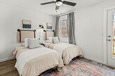 Welcome to your modern boho oasis! This stylish 3-bedroom, 3-bath townhome blends comfort and character with light-filled rooms, curated décor, and all the amenities you need for an unforgettable Bentonville stay. Relax by the private pool, explore nearby bike trails and art museums, and come home to your own cozy retreat. The garage fits one car and offers secure bike storage, and the property is pet-friendly. The bright open-concept living room features a smart TV and gas fireplace, complemented by a lower-level lounge with a sleeper sofa, perfect for movie nights or quiet reading. The primary suite includes a king bed and en-suite bath, while the second bedroom has a queen bed, and the third bedroom offers a twin-over-full bunk with a trundle. All rooms come with quality linens, blackout shades, and ample storage. The three full baths feature rainfall showers, premium toiletries, and fluffy towels. The fully equipped kitchen boasts stainless appliances, a coffee maker, and a blender, with a breakfast bar and dining table for six. The fenced backyard is an outdoor oasis with a private pool, lounge chairs, a grill, and a dining area, providing plenty of space for kids to play or pets to roam. Dedicated desk space and high-speed fiber internet ensure remote work is a breeze. Dogs are welcome with a $75 fee per stay. Please clean up after your pet and keep them off the furniture. Nestled on a quiet street in Johnson between Fayetteville and Bentonville, you're minutes from world-class mountain bike trails, the Crystal Bridges Museum of American Art, the Park Springs Trailhead, and the vibrant downtown dining scene. Enjoy nearby walking paths or venture a bit farther to Beaver Lake and the Ozark Mountains for hiking, boating, and more. Getting around is easy with access to renowned bike trails, driveway parking for one car, and local ride-share options like Uber and Lyft. Quiet hours are from 8 PM to 8 AM, and no parties or events are allowed. Smoking is strictly prohibited indoors or near open windows, with smoke remediation fees applicable. Use the pool at your own risk, as there is no lifeguard on duty, and children must be supervised at all times. Unapproved late check-outs will incur a minimum $100 fee, which may increase depending on the time overstayed. Exterior cameras monitor the driveway and side yard for security purposes. The dedicated workspace includes a desk and high-speed fiber internet, making remote work a breeze throughout the home. [SI]