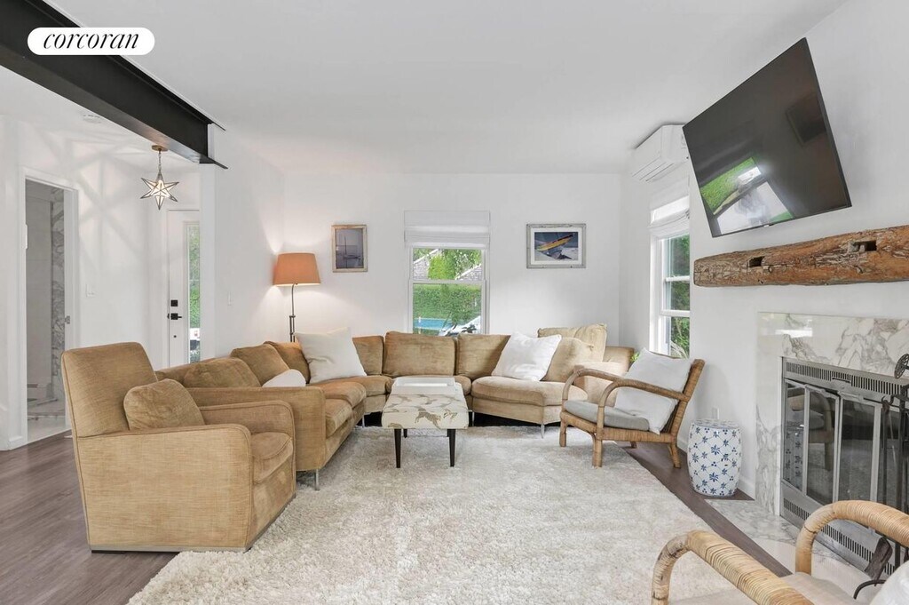 Escape to your dream summer retreat with this beautifully renovated two-story home. As you step inside, you're greeted by sunlit interiors and an open floor plan that seamlessly connects the comfortable living room, complete with a cozy fireplace, to the brand-new kitchen. Relax and recharge in the first-floor bedroom. Upstairs, three additional bedrooms and a renovated bath provide ample space for your guests to unwind and feel at home. Outside, the heated swimming pool offers a private oasis where you can soak up the sun and take a refreshing dip. After a day at the nearby Atlantic Ocean beaches, rinse off the sand in the outdoor shower and enjoy the peace and privacy of your surroundings. For even more summer fun, the community features private newly refurbished tennis courts just across the street, so you can enjoy a friendly match with friends or family. Plus, you'll be just a short distance from Main Street and Jobs Lane, where you'll find plenty of shopping, dining, and cultural activities. Don't miss your chance to experience the ultimate summer escape at this stunning home.