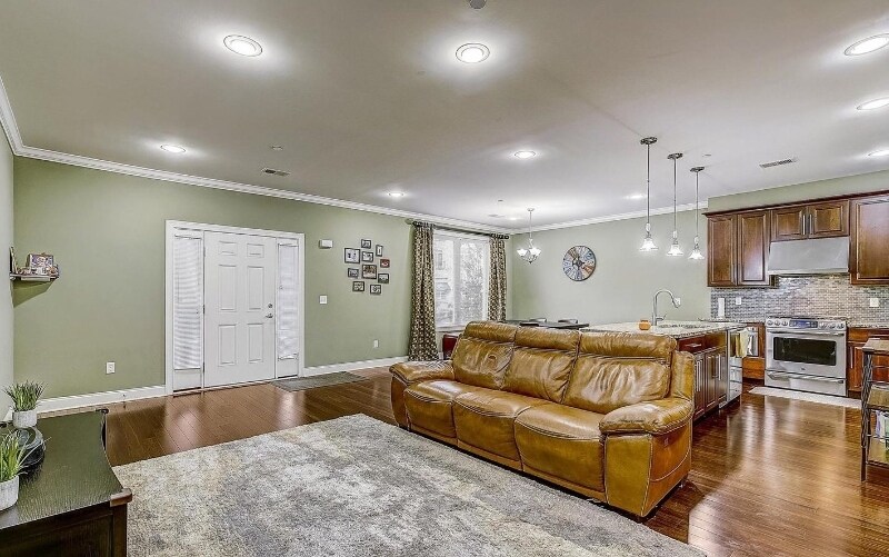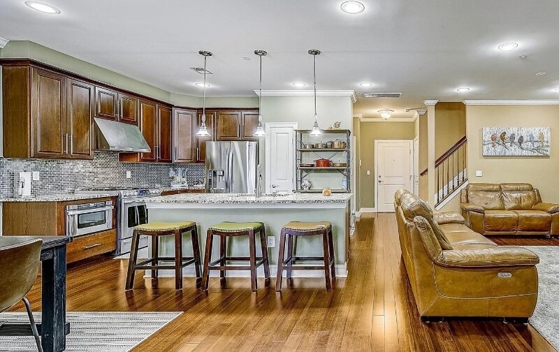 Property Id: 241803 Welcome to this immaculate loft unit at Lofts in Town Center. Unique first floor 3 bed, 4 full bath layout with private outside entrance. The first floor includes open floor plan with gourmet kitchen, stainless steel appliances , large center island with pendant lights & a full bath. The 2nd floor includes the master bedroom with 2 closets (walk-in & reach-in) and master bath, as well as another large bedroom with walk-in closet and attached bath. A fully finished basement with 1 bedroom, a full bath and two additional rooms that can be used as an office, den or exercise room. Hardwood floors through out and laundry conveniently located on second floor. Unit is right across gym (included) & clubhouse. 1 covered parking space is included, as well as plenty open spaces. Best schools & minutes from Hamilton Train station. Easy access to PHL, NYC & Princeton. Feel right at home! ***Neutral color throughout house (ignore pics) and also replaced carpet with wood-floor in basement!