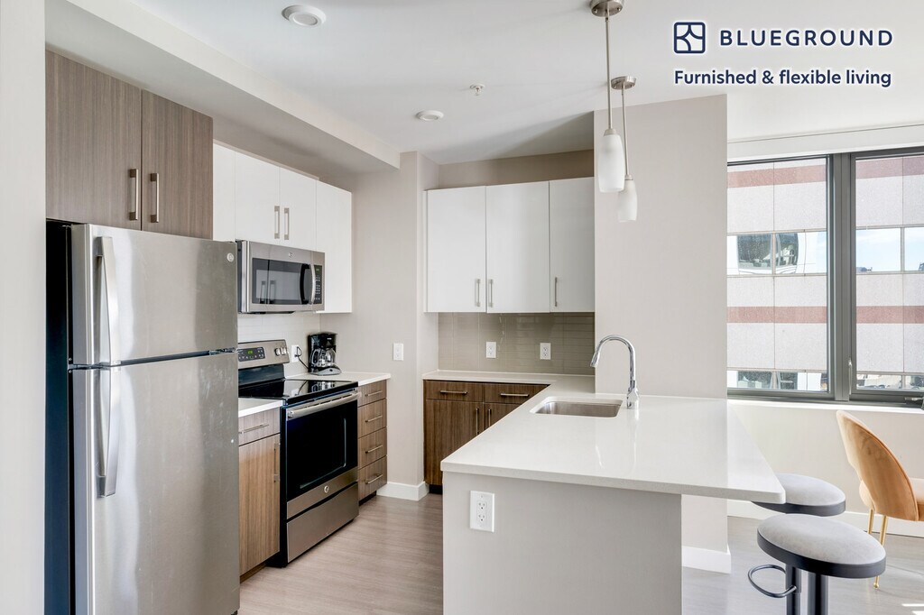 Feel at home wherever you choose to live with Blueground. You’ll love this lovely West End furnished one bedroom apartment with its modern decor, fully equipped kitchen, and comfortable living room. Ideally located, you’re close to all the best that Boston has to offer! (ID #BOS1250) The advertised rate of $3,900/month is the lowest available price, based on a 2 month(s) and 22 day(s) stay with a move-in date of October 25, 2025. If you’re looking for a 1-year stay, the rate is $4,670/month. Rates vary depending on the duration of stay, season, and other parameters. For exact pricing and additional pricing components, please visit our website and enter your desired move-in and move-out dates. The rate is applicable when billed upfront; it can be higher if billed in multiple payments. Brokers are welcome to reach out. Were you looking for an unfurnished lease? Try Blueground instead and upgrade from unfurnished to furnished living: - Furnished at rates comparable to unfurnished - No setup or furniture costs - save thousands - Move-in ready - save time, just bring your suitcase Designed with you in mind Thoughtfully designed with bespoke finishes, modern furnishings, and a fully equipped kitchen, you’ll enjoy that “I’m home” feeling with this Blueground apartment. Whether you’re lounging in your sophisticated living room streaming the latest and greatest entertainment on the smart TV or premium wireless speaker, or getting some well-earned rest on the superior quality mattress with luxury linens, you’ll fall in love with everything this West End apartment has to offer. This apartment also offers in-apartment laundry. Sleeping arrangements Queen Bed, 63in/160cm Amenities Building amenities unique to this one bedroom apartment include an on-site: - BBQ Area - Dryer - Elevator - Washing machine - Parking - Pets allowed Arrival and ongoing support The entire apartment is yours to enjoy! Throughout your stay, you’ll have access to our Client Experience team through the Blueground App. You can schedule additional cleanings, submit maintenance requests, and view our neighborhood recommendations with just a few taps. We’ll share all details upon confirmation of your stay. Ideally Located This furnished apartment is located in the West End, a centrally-located neighborhood that blends old and new. Home to Massachusetts General Hospital and TD Garden, you’ll also find many corporate headquarters and North Station nearby for easy commuting. The Charles River offers enjoyable waterfront strolls and dog walking routes. All T lines pass through the area and you’re also never far from highway access or catching the Longfellow Bridge over to Cambridge. Other things to note Building amenities may have an extra cost. This Blueground apartment has flexible lease options, allowing you to book it for one month, a year, or more. Pets are welcome, though weight limits and breed restrictions apply and may incur fees. Parking is offered based on availability and is subject to a fee. We take great pride in ensuring every photo displayed is shot in our own units with our actual furnishings. That said, we regularly refresh our decor and furniture arrangement, which may differ from what’s pictured. [GO]