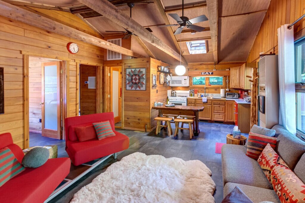 The advertised rate of $3,496/month is the lowest available price, based on a 30 day(s) stay with a move-in date of March 18, 2026. Rates vary depending on the duration of stay, season, and other parameters. For exact pricing and additional pricing components, please visit our website and enter your desired move-in and move-out dates. The rate is applicable when billed upfront; it can be higher if billed in multiple payments. Tucked away on 6.5 peaceful, wooded acres above the charming village of Margaretville, Bluestone Log Cabin offers the perfect mix of classic Catskills charm and modern comforts. Feel at home in this cozy hideaway named for the beautiful Catskill bluestone that surrounds it. Get comfy by the wood stove, stream your favorites on the 65" Smart TV, enjoy the Swedish sauna, gather around the fire pit, or enjoy the outdoor shower for warm-weather refreshes and the new outdoor ping pong table (April–October). The country kitchen includes a gas stove, microwave, toaster oven, and mini fridge, a Keurig coffee maker, pots, pans, dishes, utensils, and basic seasonings. The private cedar barrel sauna, located on the back deck, features a large picture window facing the woods and a rotating timer. The deck also offers comfortable outdoor seating with cushions and pillows stored in the deck box. Fast Wi-Fi via Netgear Orbi 960 provides coverage across the property. Central AC keeps you chill on hot days. Games and books are available for quiet moments. A dog is welcome with prior approval and a pet fee. For an additional $100 per night and $50 cleaning fee, you can add the charming Love Shack studio, which features a queen bed, mid-size fridge, microwave, toaster oven, Keurig, dishes and cutlery, Fujitsu split heat/AC unit, TV with Netflix and Prime, Echo Dot with Amazon Music, and a bathroom with shower. A Juicebox 40A EV Charger is available for your electric ride. Set just off a quiet, dead-end country road, Bluestone is nestled on a mountain above the quaint village of Margaretville. It’s a 4-minute drive into town where you’ll find a mix of shops, restaurants, antique stores, art galleries, and even a well-stocked supermarket. Nearby adventures include Belleayre and Plattekill ski resorts, hiking trails and golf courses, canoeing and kayaking on the Pepacton Reservoir, fishing on the legendary Beaverkill River, the historic Red Barn Farmers Market, and Ark Bowl & BBQ – a quirky retro bowling alley with a vintage vibe. Faith American Brewing Co., Kelsey Grammer’s seasonal tavern, is just 4.3 miles away. A car is essential for getting around. In winter months (Oct–April), AWD or 4WD vehicles with all-season or snow tires are strongly recommended. Quiet hours are from 9PM to 8AM, keep outdoor noise to a minimum. No parties are allowed, and only the number of guests on the reservation should be in the house. Let the host know of daytime guests. If you must smoke, do so outdoors only and extinguish when done then put in the garbage. No ATVs, snowmobiles, fireworks, or firearms are allowed. This home is tucked in the woods, and part of the charm of country life is sharing space with nature. While the exterior is professionally treated, occasional visits from insects or mice are possible, even in spotless homes. If you're highly sensitive to wildlife, this may not be the best fit. The home uses a private well and septic system. Do not use sprinklers, kiddie pools, or Slip N Slides, as they can quickly drain the well and damage the pump. Only flush toilet paper—no wipes, paper towels, or hygiene products. Dusk-to-dawn lighting is installed at the cabin entry, Love Shack back door, and parking area, including the walkway and garbage bin area. In colder months, Delaware County is mountainous and can get snowy and icy. We recommend AWD, FWD, or 4WD vehicles and winter or all-season tires with good tread. Avoid 2WD or RWD vehicles in wintry conditions. The driveway is plowed and shoveled to the door, and a shovel is provided for clearing walkways during your stay. Sauna use is at your own risk. [SI]