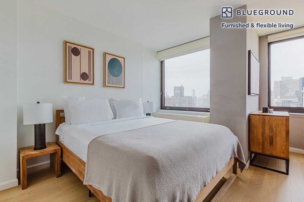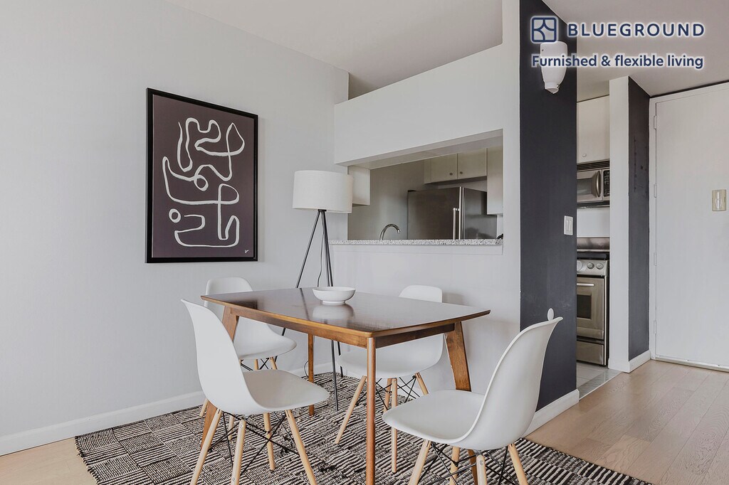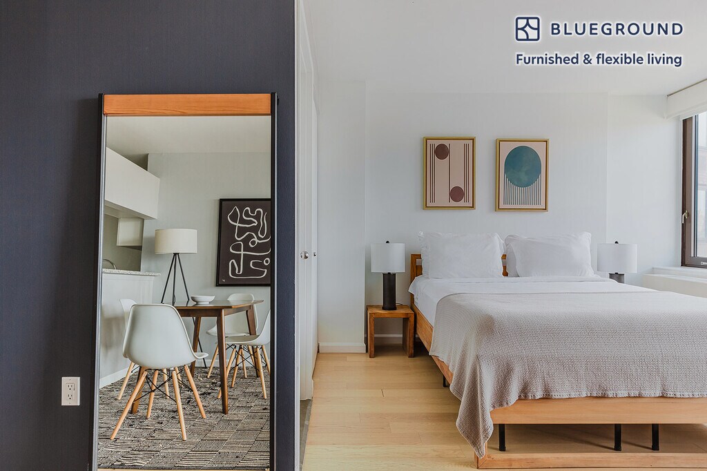 Feel at home wherever you choose to live with Blueground. You’ll love this cozy Union Square furnished studio apartment with its modern decor, fully equipped kitchen, and spacious living room with great high floor views. Ideally located, you’re close to all the best that New York has to offer! (ID #NYC95) The advertised rate of $6,640/month is the lowest available price, based on a 12 month(s) stay with a move-in date of April 2, 2026. Rates vary depending on the duration of stay, season, and other parameters. For exact pricing and additional pricing components, please visit our website and enter your desired move-in and move-out dates. The rate is applicable when billed upfront; it can be higher if billed in multiple payments. Brokers are welcome to reach out. Were you looking for an unfurnished lease? Try Blueground instead and upgrade from unfurnished to furnished living: - Furnished at rates comparable to unfurnished - No setup or furniture costs - save thousands - Move-in ready - save time, just bring your suitcase Designed with you in mind Gorgeous furniture, fully equipped kitchen, smart TV, and a premium wireless speaker are just a few of the amenities you’ll find inside this studio apartment. Ideally located in New York, you’ll find a lot to love outside as well. When you’re ready to relax, you’ll be happy to discover every Blueground bedroom comes with superior quality mattresses, luxury linens, and cozy towels. We handle everything so you can simply show up and start living. Sleeping arrangements Queen Bed, 63in/160cm Amenities Building amenities unique to this studio apartment include an on-site: - BBQ Area - Doorman - Dryer in building - Elevator - Washing machine in building - Pets allowed Arrival and ongoing support The entire apartment is yours to enjoy! Throughout your stay, you’ll have access to our Client Experience team through the Blueground App. You can schedule additional cleanings, submit maintenance requests, and view our neighborhood recommendations with just a few taps. We’ll share all details upon confirmation of your stay. Other things to note Building amenities may have an extra cost. This Blueground apartment has flexible lease options, allowing you to book it for one month, a year, or more. Pets are welcome, though weight limits and breed restrictions apply and may incur fees. Brokes CYOF. We take great pride in ensuring every photo displayed is shot in our own units with our actual furnishings. That said, we regularly refresh our decor and furniture arrangement, which may differ from what’s pictured.
