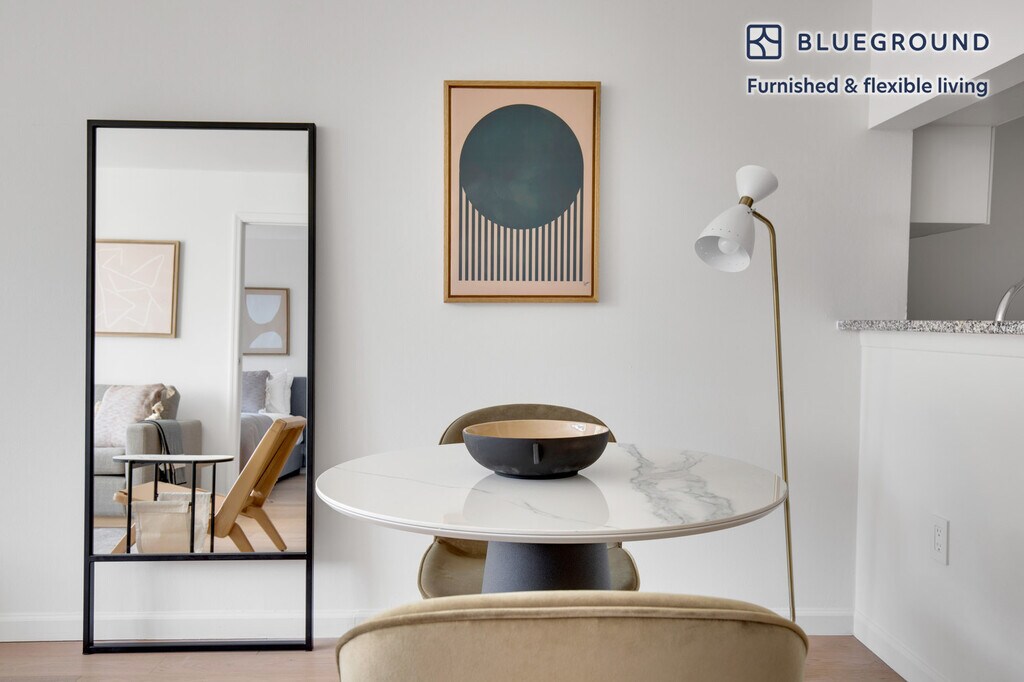 Discover the best of New York, with this one bedroom apartment in Union Square with high floor views over the city. It’ll be easy to simply show up and start living in this fashionably furnished apartment with its fully equipped kitchen, charming living room, and our dedicated, on-the-ground support. (ID #NYC731) The advertised rate of $7,510/month is the lowest available price, based on a 12 month(s) stay with a move-in date of December 16, 2025. Rates vary depending on the duration of stay, season, and other parameters. For exact pricing and additional pricing components, please visit our website and enter your desired move-in and move-out dates. The rate is applicable when billed upfront; it can be higher if billed in multiple payments. Brokers are welcome to reach out. Were you looking for an unfurnished lease? Try Blueground instead and upgrade from unfurnished to furnished living: - Furnished at rates comparable to unfurnished - No setup or furniture costs - save thousands - Move-in ready - save time, just bring your suitcase Designed with you in mind Thoughtfully designed with bespoke finishes, modern furnishings, and a fully equipped kitchen, you’ll enjoy that “I’m home” feeling with this Blueground apartment. Whether you’re lounging in your spacious living room streaming the latest and greatest entertainment on the smart TV or premium wireless speaker, or getting some well-earned rest on the superior quality mattress with luxury linens, you’ll fall in love with everything this Union Square apartment has to offer. Sleeping arrangements Queen Bed, 63in/160cm Amenities Building amenities unique to this one bedroom apartment include an on-site: - BBQ Area - Doorman - Dryer in building - Elevator - Washing machine in building - Pets allowed Arrival and ongoing support The entire apartment is yours to enjoy! Throughout your stay, you’ll have access to our Client Experience team through the Blueground App. You can schedule additional cleanings, submit maintenance requests, and view our neighborhood recommendations with just a few taps. We’ll share all details upon confirmation of your stay. Other things to note Building amenities may have an extra cost. This Blueground apartment has flexible lease options, allowing you to book it for one month, a year, or more. Pets are welcome, though weight limits and breed restrictions apply and may incur fees. Brokes CYOF. We take great pride in ensuring every photo displayed is shot in our own units with our actual furnishings. That said, we regularly refresh our decor and furniture arrangement, which may differ from what’s pictured. [SI]