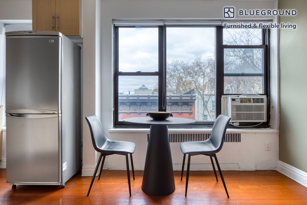 Feel at home wherever you choose to live with Blueground. You’ll love this cozy South Village furnished studio apartment with its modern decor, fully equipped kitchen, and pretty living room with great views. Ideally located, you’re close to all the best that New York has to offer! (ID #NYC104) The advertised rate of $4,480/month is the lowest available price, based on a 1 month(s) and 29 day(s) stay with a move-in date of November 15, 2025. If you’re looking for a 1-year stay, the rate is $5,490/month. Rates vary depending on the duration of stay, season, and other parameters. For exact pricing and additional pricing components, please visit our website and enter your desired move-in and move-out dates. The rate is applicable when billed upfront; it can be higher if billed in multiple payments. Brokers are welcome to reach out. Were you looking for an unfurnished lease? Try Blueground instead and upgrade from unfurnished to furnished living: - Furnished at rates comparable to unfurnished - No setup or furniture costs - save thousands - Move-in ready - save time, just bring your suitcase Designed with you in mind Gorgeous furniture, fully equipped kitchen, smart TV, and a premium wireless speaker are just a few of the amenities you’ll find inside this studio apartment. Ideally located in New York, you’ll find a lot to love outside as well. When you’re ready to relax, you’ll be happy to discover every Blueground bedroom comes with superior quality mattresses, luxury linens, and cozy towels. We handle everything so you can simply show up and start living. Sleeping arrangements Queen Bed, 63in/160cm Amenities Building amenities unique to this studio apartment include an on-site: - Doorman - Dryer in building - Elevator - Washing machine in building - Lounge - Pets allowed Arrival and ongoing support The entire apartment is yours to enjoy! Throughout your stay, you’ll have access to our Client Experience team through the Blueground App. You can schedule additional cleanings, submit maintenance requests, and view our neighborhood recommendations with just a few taps. We’ll share all details upon confirmation of your stay. Other things to note Building amenities may have an extra cost. This Blueground apartment has flexible lease options, allowing you to book it for one month, a year, or more. Pets are welcome, though weight limits and breed restrictions apply and may incur fees. Brokes CYOF. We take great pride in ensuring every photo displayed is shot in our own units with our actual furnishings. That said, we regularly refresh our decor and furniture arrangement, which may differ from what’s pictured.