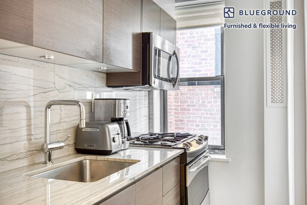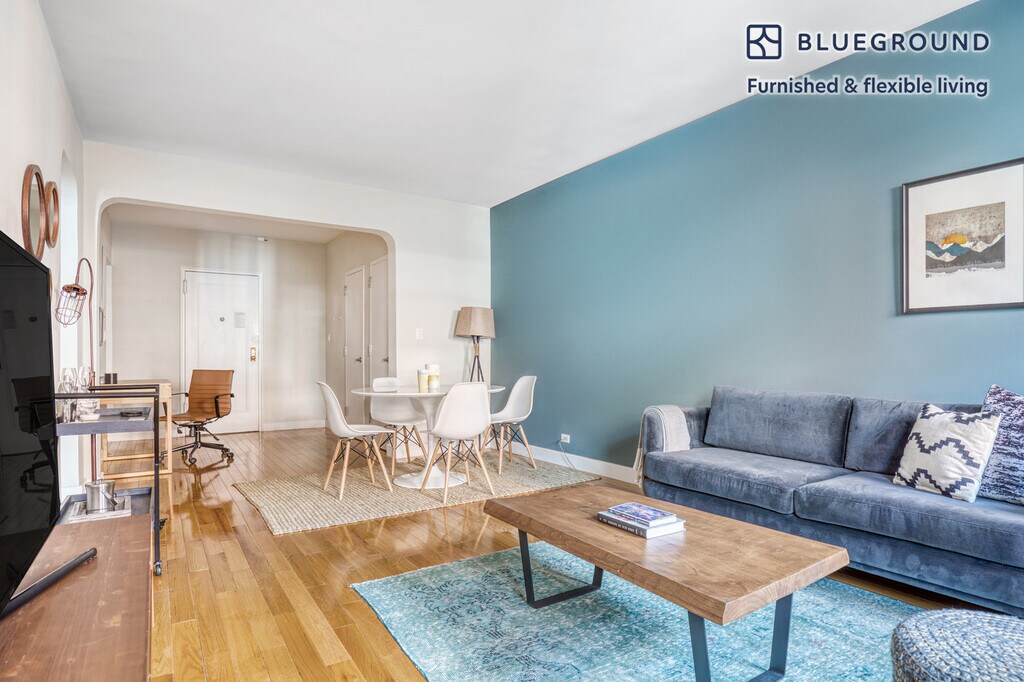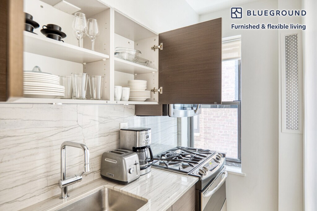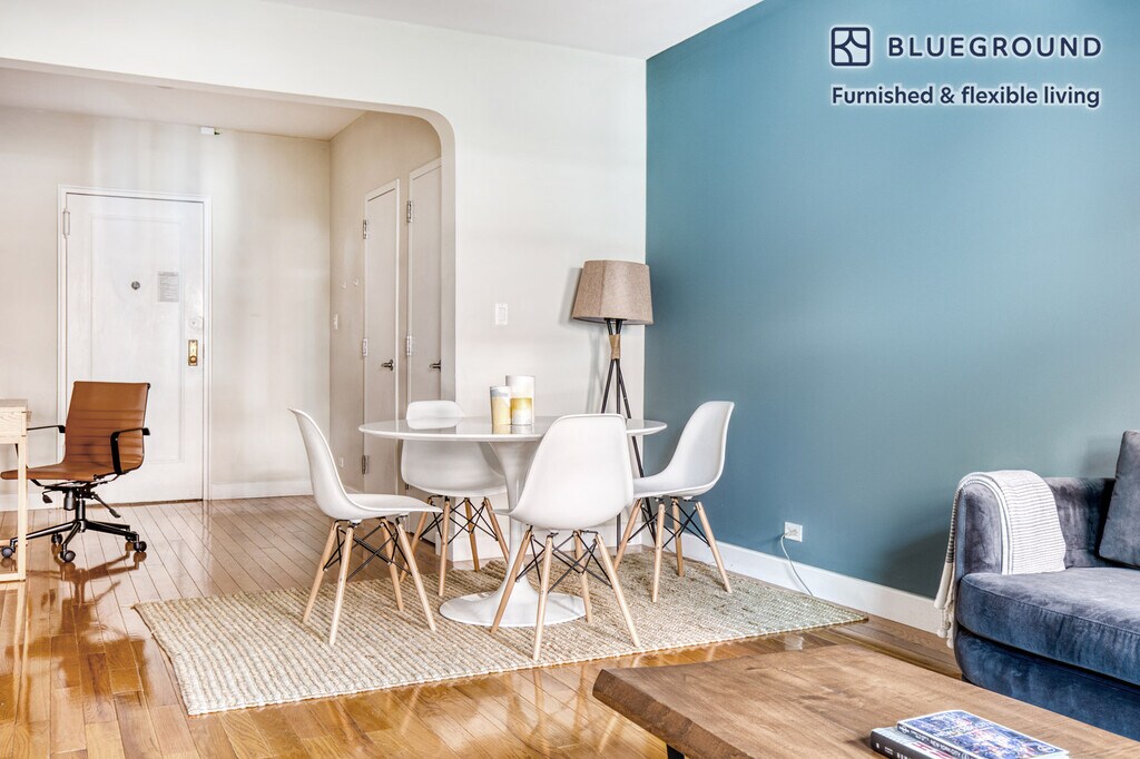 Discover the best of New York, with this one bedroom apartment in South Village. It’ll be easy to simply show up and start living in this airy furnished apartment with its fully equipped kitchen, cozy living room, and our dedicated, on-the-ground support. (ID #NYC156) The advertised rate of $7,460/month is the lowest available price, based on a 11 month(s) and 29 day(s) stay with a move-in date of April 26, 2026. Rates vary depending on the duration of stay, season, and other parameters. For exact pricing and additional pricing components, please visit our website and enter your desired move-in and move-out dates. The rate is applicable when billed upfront; it can be higher if billed in multiple payments. Brokers are welcome to reach out. Were you looking for an unfurnished lease? Try Blueground instead and upgrade from unfurnished to furnished living: - Furnished at rates comparable to unfurnished - No setup or furniture costs - save thousands - Move-in ready - save time, just bring your suitcase Designed with you in mind Thoughtfully designed with bespoke finishes, modern furnishings, and a fully equipped kitchen, you’ll enjoy that “I’m home” feeling with this Blueground apartment. Whether you’re lounging in your charming living room streaming the latest and greatest entertainment on the smart TV or premium wireless speaker, or getting some well-earned rest on the superior quality mattress with luxury linens, you’ll fall in love with everything this South Village apartment has to offer. Sleeping arrangements Queen Bed, 63in/160cm Amenities Building amenities unique to this one bedroom apartment include an on-site: - Doorman - Dryer in building - Elevator - Washing machine in building - Lounge - Pets allowed Arrival and ongoing support The entire apartment is yours to enjoy! Throughout your stay, you’ll have access to our Client Experience team through the Blueground App. You can schedule additional cleanings, submit maintenance requests, and view our neighborhood recommendations with just a few taps. We’ll share all details upon confirmation of your stay. Other things to note Building amenities may have an extra cost. This Blueground apartment has flexible lease options, allowing you to book it for one month, a year, or more. Pets are welcome, though weight limits and breed restrictions apply and may incur fees. Brokes CYOF. We take great pride in ensuring every photo displayed is shot in our own units with our actual furnishings. That said, we regularly refresh our decor and furniture arrangement, which may differ from what’s pictured. [SI]