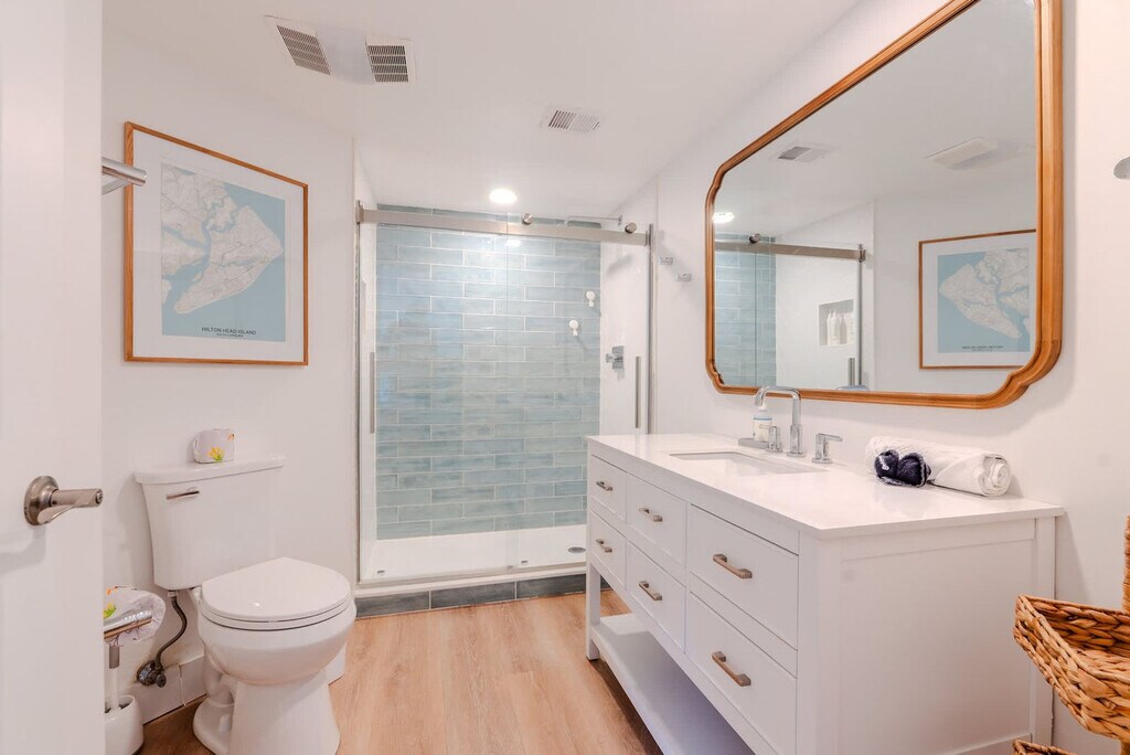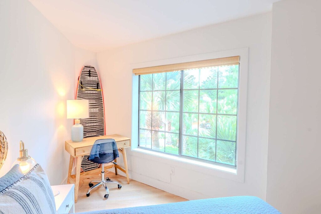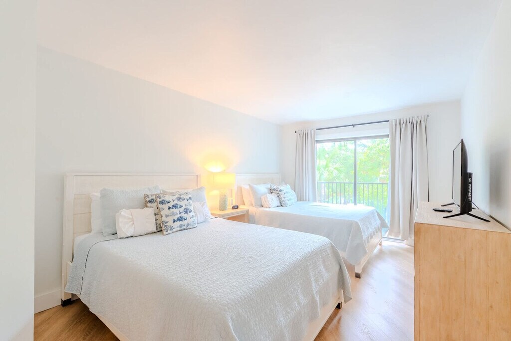 Feel at home in this spacious 2-bedroom, 2-bath Ocean Walk villa, just steps from Hilton Head’s beaches and Coligny Plaza. This third-floor apartment, with elevator access, is perfect for families and beach lovers looking for a peaceful, convenient island stay. You’ll find two comfortable living areas, each with smart TVs and full sleeper sofas. The fully equipped kitchen has everything you need for easy vacation meals, and the dining area opens onto a private patio with a wooded view, perfect for morning coffee or evening cocktails. Linens and towels are provided, and you’ll have an in-unit washer and dryer for your convenience. Wi-Fi and smart TVs are provided. Ocean Walk Villas is a quiet, beautifully landscaped community nestled off South Forest Beach Drive. You’ll be close to everything—Coligny Beach Park, local restaurants, boutique shopping, and family activities are all within walking distance. Hilton Head is best explored by bike or on foot, with miles of shaded trails connecting the beaches and shops. Cars are convenient for exploring other parts of the island, and parking is free on-site for guests. Smoking is not allowed.