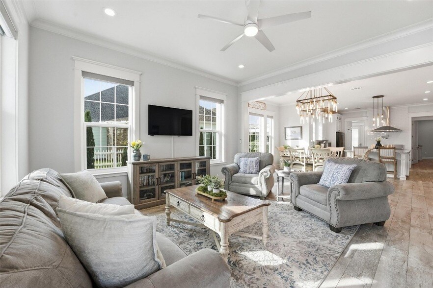 Live the coastal village lifestyle in the highly sought-after Evia community on Galveston Island. This beautifully designed home sits on an oversized homesite with scenic water views, offering the perfect setting to unwind and enjoy peaceful sunsets from the front porch.Inside, you ll find an open-concept layout filled with natural light and timeless finishes. The chef s kitchen features quartz countertops, premium appliances, and a large island ideal for entertaining. All bedrooms are conveniently located on the first floor, while the spacious upstairs loft provides flexibility for a media room, home office, or guest retreat.Step outside to a charming pergola draped with grapevines perfect for relaxing or hosting gatherings. Enjoy walkable access to Evia s coffee shop, restaurants, and boutiques just minutes away.