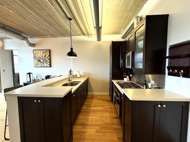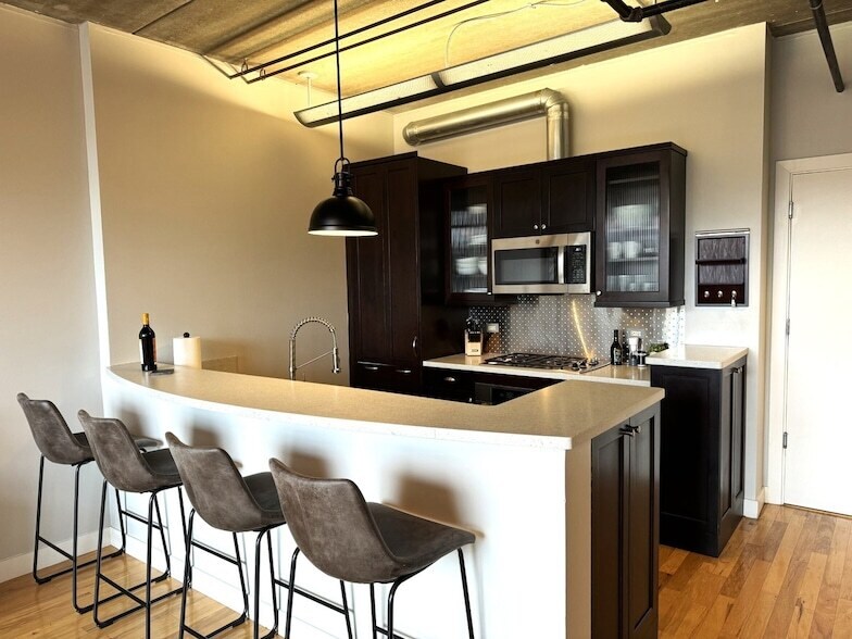 Sensational flexible short term 6 or 12 month Furnished Executive Rental in the heart of vibrant Downtown Arlington Heights! Available immediately. Beautifully appointed open concept Urban Chic Loft Style Condo-featuring modern interior colors, 10' ceilings, exposed brick walls, full heights windows, hardwood floors, & designer light fixtures. Prepare sumptuous meals in the chef style open concept island kitchen featuring 42" cabinets, Corian countertops, breakfast/serving bar, & SS appliances. All open to light bright spacious Living/Dining Room. Enjoy warm Fall evenings on the Private balcony with gorgeous South views. Added features include large Primary Bedroom suite with full Bath and walk-in closet, guest Bath, and convenient storage locker right across from the unit. Enjoy common area amenities including sensational rooftop deck with panoramic views, and adjacent Party and Workout Room. (1) Parking Space included in adjacent Parking Garage, plus free WiFi provided by homeowner! Home located just steps from Downtown Arlington Heights shops, restaurants (Alfresco Dining), Summer Concerts, theaters, and Metra Train Station. Sorry no pets or smokers, renters must have 700+ credit scores and 3x monthly rent in income. A must see! Note: