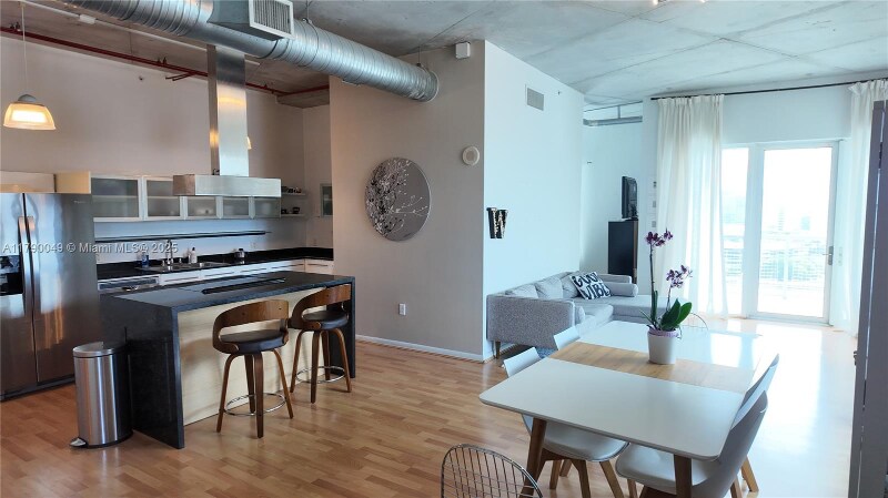 Property Id: 2154409 Expansive 2-bedroom corner loft in Historic Riverside, offering stunning views of the Miami River and skyline. The open loft comprises over 1000 SF of interior living space with 10-foot ceilings and a spacious open gourmet kitchen with custom Italian cabinetry. Step out to a wrap-around balcony with panoramic views of the River and iconic Miami skyline. Complete with one assigned parking space and additional outdoor storage, Neo Lofts is Central to Downtown Miami, Little Havana, Coconut Grove, and Brickell City Center with direct access to I-95. Amenities include a gym, infinity-edge lap pool, sauna, tennis court, meditation garden, dog park, clubhouse, business center, resident Spanish restaurant Jamon Iberico Pata Negra, 24-hour concierge, and valet.