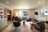 Welcome to the thoughtfully designed "Rockridge Ryokan", a one-bedroom flat in Oakland overlooking a beautiful Japanese garden with peekaboo views of the Bay. With a blend of mid-century modern decor and Japanese-inspired aesthetics, the space is designed for those who appreciate attention to detail. Neutral tones and unique decor elements create a warm and inviting atmosphere. While the home offers a peaceful view, a family lives upstairs, so there may be occasional noise. The main living area is open concept, with a spacious layout that flows naturally from the kitchen to the lounge area. The sofa folds out into a comfortable, foam tatami-style queen mattress. In the living room, a flat screen smart TV with adjustable arms makes it easy to enjoy from any angle. The master bedroom features a hotel-grade California king-size bed and an expansive walk-in closet. A dedicated workspace in the bedroom is perfect for remote work. The table easily converts into a standing desk, offering flexibility and comfort throughout your day. The en suite bathroom can only be accessed through the master bedroom and features radiant heated floors, a luxurious deep soaking tub, and a separate shower. The Clarino quartz countertops and soothing neutral tones add a spa-like finish reminiscent of a Japanese onsen—serene, minimal, and grounded in natural beauty. The kitchen is fully equipped with modern appliances including a dishwasher and stocked with cooking essentials to prepare a great meal. Coffee lovers will find everything they need to brew the perfect cup, including a V60 pour-over set-up, a classic French press, and a Bonavita drip coffee maker—each offering a different experience to suit your morning ritual. The kitchen also includes a Fellow Stagg EKG gooseneck kettle and a Fellow Ode burr coffee grinder to ensure precision and freshness in every brew. This apartment is a 7-minute drive from the vibrant Rockridge area and BART. The V bus line to the San Francisco Salesforce Transit Center is a 15-minute walk. For your daily needs, a charming neighborhood market, local cafe, gas station, and plant nursery are all just a 15-minute walk away. Check-in is typically at 3PM, and checkout is at 11AM, unless agreed upon with prior notice. If you’d like to invite additional guests or bring pets, arrangements must be made in advance. All visitors count as guests to compensate for cleaning resources. In consideration of the neighbors, events and gatherings are not permitted unless explicitly agreed upon. Smoking is not permitted on the premises. Quiet hours start at 10PM and end at 8AM to respect our neighbors. Includes a dedicated workspace in the bedroom perfect for remote work. The table easily converts into a standing desk, offering flexibility and comfort throughout your day.