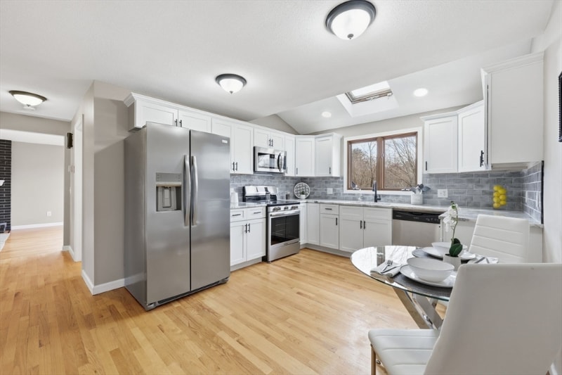 Property Id: 2387754 The first floor showcases hardwood floors, beginning with a living room centered around a classic fireplace. The NEW kitchen features a skylight, granite countertops, backsplash, stainless steel appliances, and opens to a family room with vaulted ceilings that enhances the overall flow of the main level. A dining room on this floor also offers the option for a first floor bedroom if needed with a full bath. The second floor includes two spacious bedrooms with new wall to wall carpet and a full bath. The lower level offers a small finished area, providing additional space for a home office, media room or storage area. Enjoy the private backyard setting for outdoor relaxation or simple day to day enjoyment and one car garage.