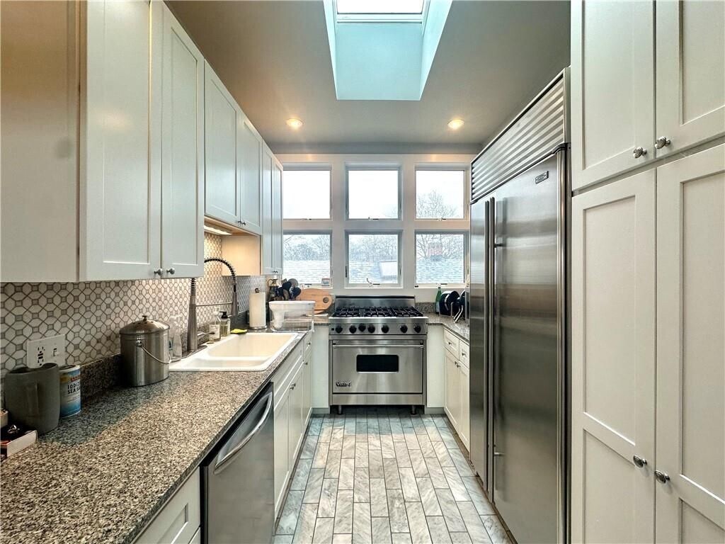 Available for negotiable summer terms! The "Firehouse" is a distinguishable building in the Yachting Village located just steps off of Thames St in the heart of downtown Newport. If you love natural sunlight, this unit is for you! This unique third floor unit has a loft penthouse feel featuring vaulted ceilings with skylights, exposed beams, and lots of windows. The central great room with open kitchen is the highlight of the space with light flooding in and views of the harbor. Step out through the French doors to the cozy covered porch where you can watch the sunset or listen to the rain fall. There are two nicely upgraded full bathrooms finished with marble and in each corner of the unit you will find a sunken bedroom. To top it all off, this unit has luxury Viking appliances, central AC, and in-unit laundry. June ($9,000), July ($15,000), August ($15,000), September ($9,000)