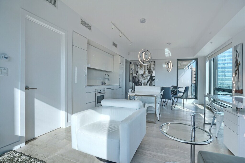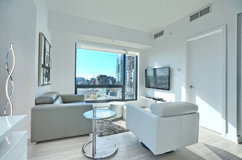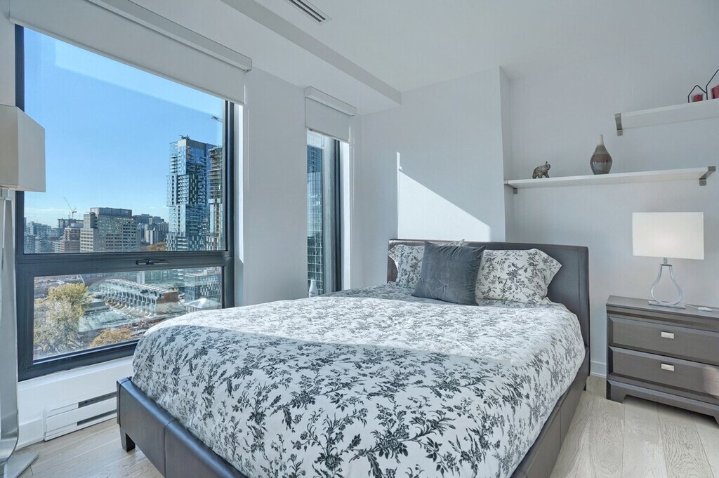 Welcome to a luxurious high-rise in downtown Montreal offering breathtaking city views. Indulge in a spacious unit with two bedrooms, two full baths, a private balcony, and expansive 10-foot ceilings that invite natural light through large, sunny windows. This property boasts high-end finishes throughout, coupled with a suite of top-tier amenities. Conveniently located mere steps from Lucien l’Allier metro station, train access, and the underground Montreal network. After visiting some exceptional apartments ourselves, we've strived to make this apartment as welcoming and cozy as we possibly could for our guests. This space welcomes four guests. It has two bedrooms with two queen beds and two full bathrooms. Enjoy a smart TV for your viewing pleasure and stay seamlessly connected with high-speed Wi-Fi throughout your stay. Indoor parking with in/out privileges is available for an additional fee depending on your length of stay. We offer a variety of cleaning services that include biweekly or monthly options for an extra charge. Built in 2016, this apartment is in the heart of downtown Montreal with security 24/7. Enjoy a fantastic terrace with a swimming pool and BBQ grills, a fitness center, a sauna and rain room, and many entertainment rooms. Just steps away from the Lucien l’Allier metro station, train, and the underground Montreal network. No parties of any kind or loud noises that can alter the harmony of residents are allowed. No smoking of cannabis, cigarettes, or any kind inside the apartment, balcony, or the building. Please care about your home away from home.