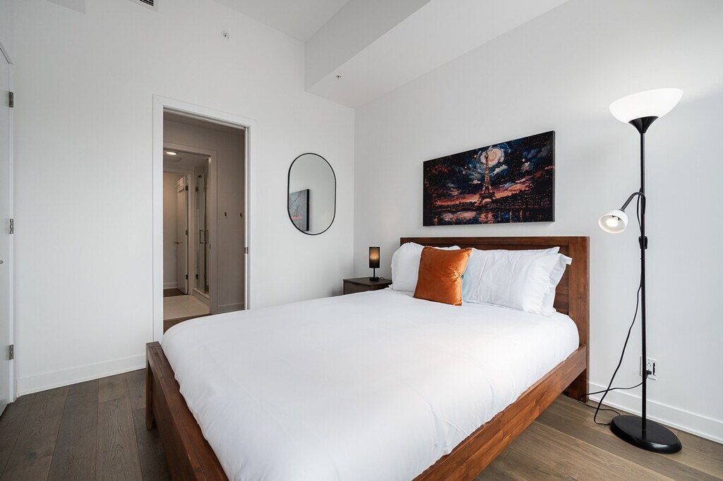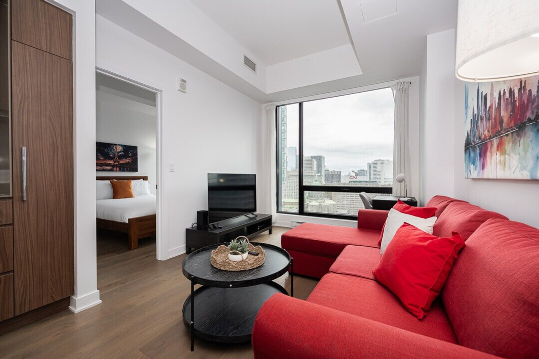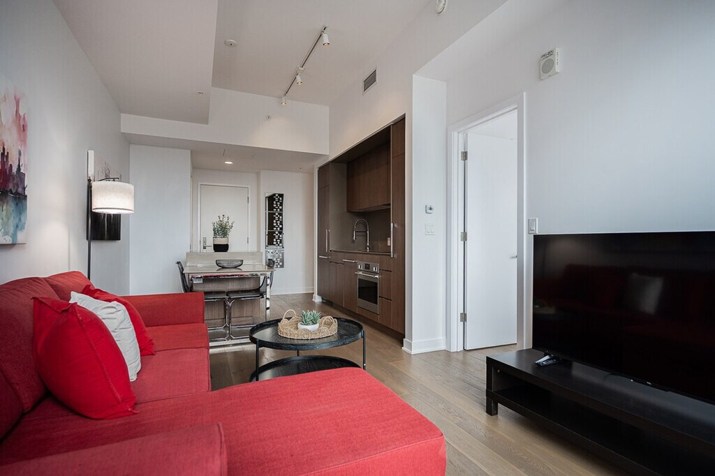 The advertised rate of C$2,707/month is the lowest available price, based on a 1 month(s) and 2 day(s) stay with a move-in date of February 3, 2027. Rates vary depending on the duration of stay, season, and other parameters. For exact pricing and additional pricing components, please visit our website and enter your desired move-in and move-out dates. The rate is applicable when billed upfront; it can be higher if billed in multiple payments. Feel at home in this luxurious high-rise in downtown Montreal, offering breathtaking city views from a spacious 1-bedroom apartment with one full bath and a private balcony. Expansive 10-foot ceilings invite natural light through large, sunny windows. This apartment boasts high-end finishes throughout and features a Smart TV and high-speed Wi-Fi. Indoor parking with in/out privileges is available for a separate fee depending on the length of your stay. A variety of cleaning services, including biweekly or monthly options, are available for an extra charge. Conveniently located steps from Lucien l’Allier metro station, train access, and the underground Montreal network, this apartment is in the heart of downtown Montreal. No parties or loud noises that can alter the harmony of residents are allowed. Smoking (including cannabis/cigarettes or any kind) is prohibited inside the apartment, balcony, or the building. Please care for your home away from home. Building amenities include 24/7 security, a fantastic terrace with a swimming pool and BBQ grills, a fitness center, a sauna and rain room, and entertainment rooms. [SI]