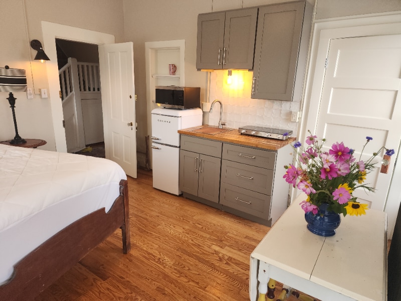 Property Id: 1553275 An efficiency apartment will be available November 1, 2025, in The Bauer House, Mancos. This unit has a double bed, new kitchennette which includes a sink, 2 plate hotplate, 3 way microwave, airfryer and convection oven, retro fridge, dresser, leather chair, ottoman,small kitchen table and two kitchen chairs together with nightstands and lamps and new tile on bathroom floor. If you may be interested, please contact me. Price includes ALL utilities including wifi!