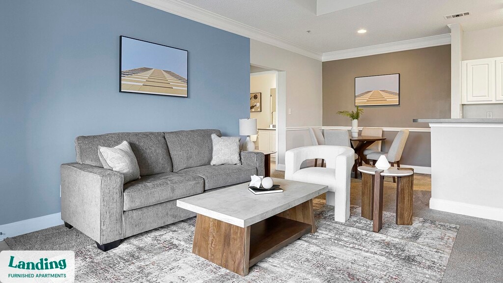 Landing offers flexible lease terms from weeks to months. Please always visit our website or contact us for the latest pricing & availability. Stay longer, save more: 6-Month Minimum base rent: starts at $1800/mo 12-Month Minimum base rent: starts at $1644/mo Landing offers flexible leases across a network of over 35,000 fully-furnished apartments throughout 375+ cities so you can rent on your terms, practically anywhere, and avoid the hassle of paying deposits or application fees. Visit to learn about all the benefits of a Landing membership, see our competitive up-to-date pricing, explore available apartments, take virtual tours, and make reservations online without jumping through traditional rental hoops. Landing's apartments at Elevate Greene are designed for comfortable, easy living, with the ability to stay as long as you like. Experience living with Landing Every apartment is outfitted with all the modern essentials including: custom-designed furnishings, a fully-equipped kitchen with deluxe stainless steel appliances, a gourmet coffee maker, premium linens, Smart TVs, and incredibly fast, reliable internet for working from home. When you live with Landing, you'll enjoy a hassle-free experience with the added benefit of 24/7 access to our dedicated member experience team. Some of the nitty-gritty: a background check and proof of income are required; we're completely smoke-free; bundled utility packages and pricing vary based on length of stay; pet-friendly options available; listed price reflects a 12-month minimum stay.
