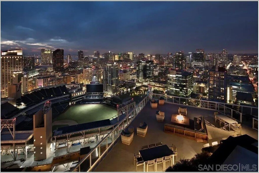 Experience elevated penthouse living at Park 12 in the heart of downtown San Diego. This one-of-a-kind residence boasts soaring 40-foot ceilings, dramatic floor-to-ceiling windows, and remote-controlled roller shades that frame breathtaking city views. From your expansive private balcony, enjoy a direct sightline into Petco Park perfect for catching Padres games and concerts from home. The interior showcases polished quartz countertops, high-gloss cabinetry, polished chrome fixtures, and upgraded appliances, including a built-in refrigerator and wine fridge. Spa-inspired bathrooms feature TVs in the mirrors, a soaking tub, and walk-in shower. As a resident of Park 12, indulge in world-class amenities: a 24-hour indoor/outdoor fitness center, heated saltwater pools, sports lounge with arcade games and bowling lanes, and a co-working lounge. Modern architecture, enviable amenities, and unrivaled views make this penthouse the ultimate expression of downtown San Diego luxury.