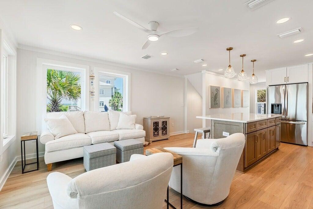 The advertised rate of $8,935/month is the lowest available price, based on a 1 month(s) stay with a move-in date of April 11, 2026. Rates vary depending on the duration of stay, season, and other parameters. For exact pricing and additional pricing components, please visit our website and enter your desired move-in and move-out dates. The rate is applicable when billed upfront; it can be higher if billed in multiple payments. Experience beachfront luxury in this beautifully remodeled, three-story townhome, also known as Spooky Palms, offering accommodations for up to 10 guests. Feel at home in this 4-bedroom, 4-bathroom retreat in the exclusive, gated community of Sea Haunts, directly on the sugar-white sands of 30A. This spacious retreat features a fully remodeled and fully equipped kitchen, a private balcony overlooking the Gulf, lush landscaped grounds, and a large community pool. Enjoy private deeded beach access. Ideally situated just steps from Gulf Place, you'll be within walking distance of coffee shops, boutiques, restaurants, and entertainment. Take a short bike ride or drive to explore iconic 30A towns like Seaside, WaterColor, Alys Beach, and Rosemary Beach. Bike along the scenic Timpoochee Trail or hike through nearby state parks like Grayton Beach, Deer Lake, and Topsail Hill Preserve. Discover boutiques at Alys and Rosemary Beach, outlet deals at Silver Sands, or upscale shops at Grand Boulevard. Pets are not allowed. [SI]