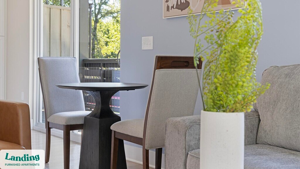 Landing offers flexible lease terms from weeks to months. Please always visit our website or contact us for the latest pricing & availability. Stay longer, save more: 6-Month Minimum base rent: starts at $2377/mo 12-Month Minimum base rent: starts at $2111/mo Landing offers flexible leases across a network of over 35,000 fully-furnished apartments throughout 375+ cities so you can rent on your terms, practically anywhere, and avoid the hassle of paying deposits or application fees. Visit to learn about all the benefits of a Landing membership, see our competitive up-to-date pricing, explore available apartments, take virtual tours, and make reservations online without jumping through traditional rental hoops. Landing's apartments at Livano Oakwood are designed for comfortable, easy living, with the ability to stay as long as you like. Experience living with Landing Every apartment is outfitted with all the modern essentials including: custom-designed furnishings, a fully-equipped kitchen with deluxe stainless steel appliances, a gourmet coffee maker, premium linens, Smart TVs, and incredibly fast, reliable internet for working from home. When you live with Landing, you'll enjoy a hassle-free experience with the added benefit of 24/7 access to our dedicated member experience team. Some of the nitty-gritty: a background check and proof of income are required; we're completely smoke-free; bundled utility packages and pricing vary based on length of stay; pet-friendly options available; listed price reflects a 12-month minimum stay.