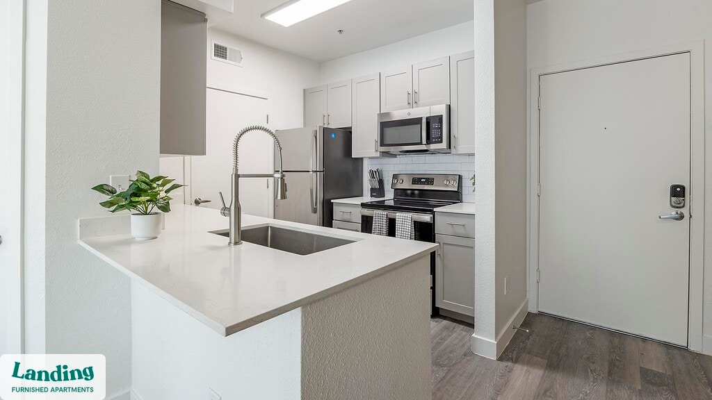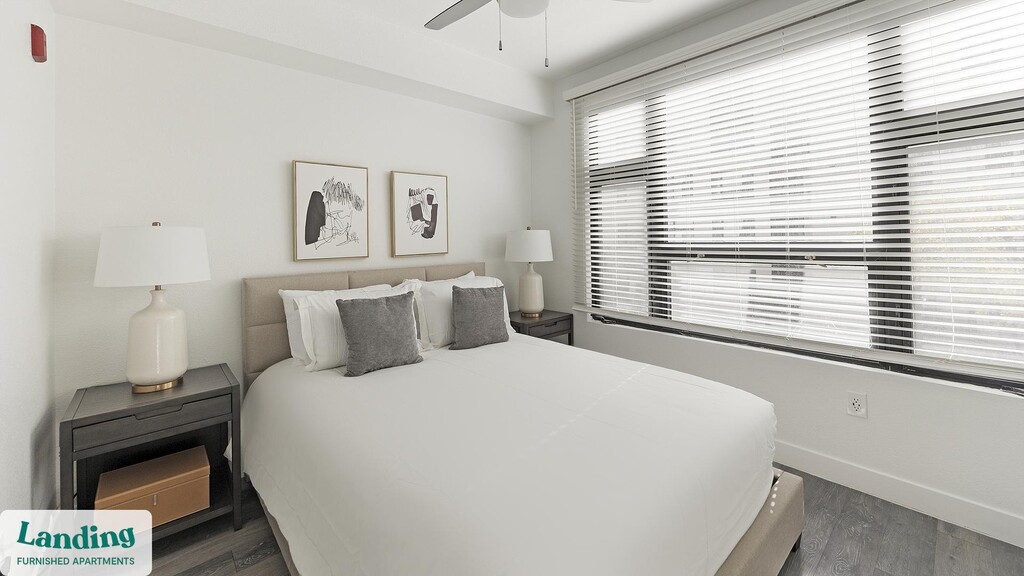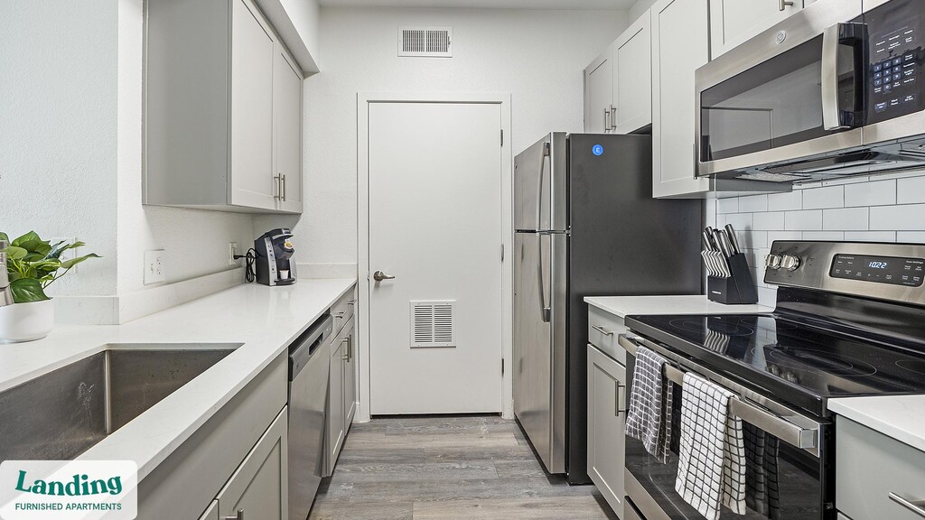 Landing offers flexible lease terms from weeks to months. Please always visit our website or contact us for the latest pricing & availability. Stay longer, save more: 6-Month Minimum base rent: starts at $2534/mo 12-Month Minimum base rent: starts at $2268/mo Landing offers flexible leases across a network of over 35,000 fully-furnished apartments throughout 375+ cities so you can rent on your terms, practically anywhere, and avoid the hassle of paying deposits or application fees. Visit to learn about all the benefits of a Landing membership, see our competitive up-to-date pricing, explore available apartments, take virtual tours, and make reservations online without jumping through traditional rental hoops. Landing's apartments at Ten01 On The Lake are designed for comfortable, easy living, with the ability to stay as long as you like. Experience living with Landing Every apartment is outfitted with all the modern essentials including: custom-designed furnishings, a fully-equipped kitchen with deluxe stainless steel appliances, a gourmet coffee maker, premium linens, Smart TVs, and incredibly fast, reliable internet for working from home. When you live with Landing, you'll enjoy a hassle-free experience with the added benefit of 24/7 access to our dedicated member experience team. Some of the nitty-gritty: a background check and proof of income are required; we're completely smoke-free; bundled utility packages and pricing vary based on length of stay; pet-friendly options available; listed price reflects a 12-month minimum stay.