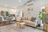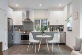 Explore Capitol Hill from this charming townhome with an urban farmhouse vibe. Situated in the heart of the Belmont Historic District, this four-story townhome offers 960 sqft of living space, including a rooftop patio with views of the Space Needle. With no steps at the entrance, it features two bedrooms and two bathrooms, making it perfect for your Seattle adventure. This tastefully decorated townhome boasts a modern urban farmhouse style, complete with a well-planned floor layout. The first floor includes a living room, kitchen, and dining area with air conditioning. The second floor houses a bedroom with a queen bed, a height-adjustable standing desk, and an office chair, along with a hallway bath featuring a bathtub and shower combo. The primary bedroom on the third floor offers a queen bed, an ensuite bathroom with a luxury rain shower, heated floors, and air conditioning. The rooftop patio provides comfortable outdoor seating and stunning views. The townhome does not have dedicated parking, but a city-issued guest parking permit is provided for free street parking. However, street parking is first-come-first-served and can be challenging to find. Paid public parking is available nearby. Well-trained pets are welcome with a fee of $50 per night. Additional guest fees are $25 per person per night for more than four guests, up to a maximum of five guests. Capitol Hill epitomizes 21st-century Seattle with its youthful, high-tech, and culturally adventurous atmosphere. Known for its coffee culture, vibrant nightlife, and major events like the Block Party and Pride Parade, this neighborhood offers a plethora of activities. From Volunteer Park to the Seattle Asian Art Museum, and numerous dining and microbrewery options, there's always something to explore. With a high walk score, the townhome is minutes away from the Capitol Hill Light Rail Station, providing easy access to other parts of the city, including the airport. The townhome is not handicap-friendly and requires comfort with stairs due to its multiple stories. Guest access is granted via a smart lock. Quiet hours are enforced between 10 pm and 8 am, and there is a strict no-smoking, no-vaping, and no-parties policy, with a $500 fine per violation. Pets should not be left unattended and are not allowed on furniture or linens. Ideal for remote work, the townhome includes a height-adjustable standing desk and office chair, along with fast internet. A laptop computer is not included. Registration Number: STR-OPLI-22-000076 [SI]
