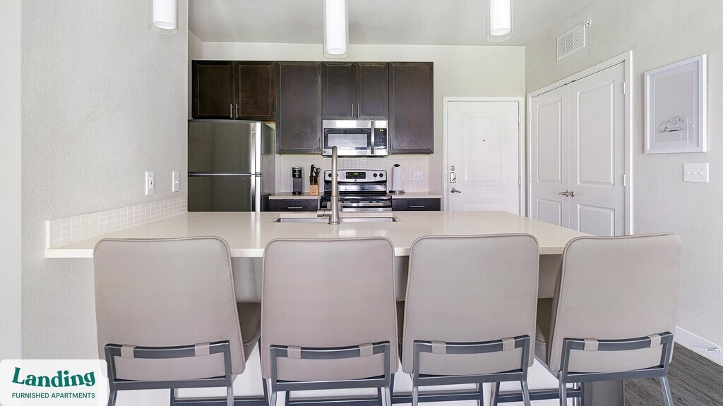 Landing offers flexible lease terms from weeks to months. Please always visit our website or contact us for the latest pricing & availability. Stay longer, save more: 6-Month Minimum base rent: starts at $2310/mo 12-Month Minimum base rent: starts at $2172/mo Landing offers flexible leases across a network of over 35,000 fully-furnished apartments throughout 375+ cities so you can rent on your terms, practically anywhere, and avoid the hassle of paying deposits or application fees. Visit to learn about all the benefits of a Landing membership, see our competitive up-to-date pricing, explore available apartments, take virtual tours, and make reservations online without jumping through traditional rental hoops. Landing's apartments at Falcon at Grand Harbor are designed for comfortable, easy living, with the ability to stay as long as you like. Experience living with Landing Every apartment is outfitted with all the modern essentials including: custom-designed furnishings, a fully-equipped kitchen with deluxe stainless steel appliances, a gourmet coffee maker, premium linens, Smart TVs, and incredibly fast, reliable internet for working from home. When you live with Landing, you'll enjoy a hassle-free experience with the added benefit of 24/7 access to our dedicated member experience team. Some of the nitty-gritty: a background check and proof of income are required; we're completely smoke-free; bundled utility packages and pricing vary based on length of stay; pet-friendly options available; listed price reflects a 12-month minimum stay.
