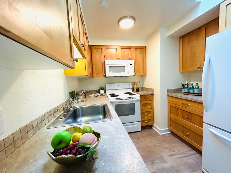 Property Id: 2169931 Welcome to this delightful 2-bedroom cottage nestled in Kirkland. Just minutes from Juanita Village, Totem Lake Shopping Mall, Evergreen Hospital, and I-405, this home offers unbeatable convenience with a serene neighborhood feel. Step inside to discover an efficient layout featuring laminate wood flooring and a cozy gas fireplace that warms the open-concept living, kitchen, and dining areas. This house provides a peaceful retreat, perfect for rest and relaxation. Enjoy your own private space with a fenced yard and deck—ideal for morning coffee or evening unwinding. The attached garage and extra parking add everyday ease, while the low-maintenance design lets you focus on what matters most. Located near scenic parks, lakes, beaches, and top-rated schools like Juanita High, this quiet and cute home is the perfect blend of comfort and location