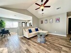 FRESH STYLE MEETS EVERYDAY CONVENIENCE. Beautifully updated and move-in ready, this Copperfield townhome offers modern style, smart updates, and a central location that makes life easy. Refreshed in April 2024, the home features wood-look tile throughout, recent paint, updated doors and trim, refreshed ceilings, and modern fixtures for a clean, cohesive look. The vaulted living room is filled with natural light and connects seamlessly to a dining nook and a bright, open kitchen with crisp white cabinetry, stainless appliances, sleek countertops, and modern hardware. Both bedrooms are well-sized, and the bathroom was fully reimagined with subway tile, fresh finishes, and a polished, spa-like vibe. Step outside to a private fenced yard space with patio ready for morning coffee, pets, or a quiet evening. Plus enjoy the ease of an attached garage and HOA-maintained exterior (roof, siding, foundation, yard care, pest control, gutters). The location keeps you close to everything — minutes from The Domain, Walnut Creek Park, Austin FC Stadium, and quick commutes to Dell, Samsung, Tesla, GE, and Apple. With style, comfort, and convenience wrapped into one, this is North Austin living at its best.