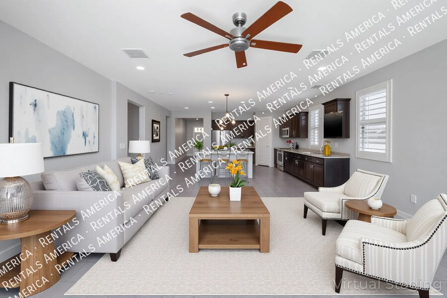 $500 off first month's rent if move in before 12/1/2025. This gem of a property offers the ultimate Arizona lifestyle. This greatly kept, 2018-built, 4 bed, 3 bath, 2,137 SqFt single-story home features an upgraded chef's kitchen with an oversized island and abundant storage. Multi-slide doors seamlessly blend indoor/outdoor living, opening to an extended covered patio. Tile floors throughout and lvl in bedrooms. Enjoy elegant wood plantation shutters, a spacious master en-suite with dual vanity, soaking tub, shower, and walk-in closet, plus walk-in closets in all bedrooms. Ideally located blocks from A+ schools like BASIS, and minutes from groceries, dining, shopping, and entertainment, this desirable community boasts pools, playgrounds, parks, trails, and a clubhouse. Perfect for outdoor enthusiasts! One Time Admin Fee: $300, Pet Deposit: $300/pet (if applicable), Service Fee: 2%. $39/month Resident Benefits Package, Helping Heroes Discount Available! Cats Allowed Community Pool Disposal Dogs Allowed Dryer Garage Pets Allowed Vinyl Washer
