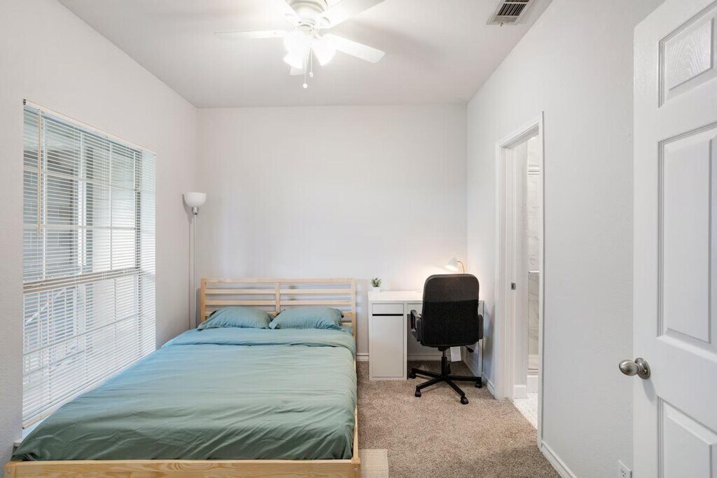 Feel at home in this beautiful and spacious apartment located on the third floor of a walk-up building. This apartment features modern appliances and Wi-Fi. Laundry is conveniently located on the first floor of the building. Only one parking spot is available, and a $50 refundable deposit is required for a parking sticker. Stickers must be used at all times to avoid towing. The property is surrounded by beautiful pecan and oak trees and is near UT at Austin and the Texas Capitol. Perfect for students, young professionals, and interns. The bedrooms are designed for privacy and lock from the inside only—there are no exterior locks on the doors. [SI]
