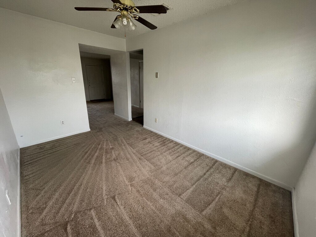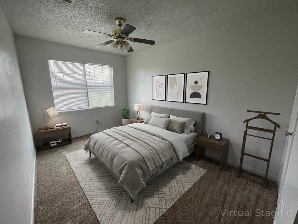 view 360° virtual tour: This 2-bedroom, 1-bath townhouse offers approximately 1,054 square feet of spacious living. The layout includes a living room, dedicated dining area, and a bathroom with a large vanity and tub/shower combination. The kitchen is equipped with a refrigerator, stove, dishwasher, and double sink, along with ample workspace. Both bedrooms feature carpeted flooring and ceiling fans for added comfort. The property also offers the added benefit of no rear neighbors. A $40 monthly water and trash fee applies in addition to rent. Appointments aren't required to tour. Contact us or stop by our Killeen office to learn more and see this home in person once it becomes available! We are located at 1020 W Jasper Drive, Killeen, TX 76542. Disclaimer: The furnishings or enhancements shown are AI-generated and intended for inspiration only. They may not reflect the actual scale, condition, or current features of the property.