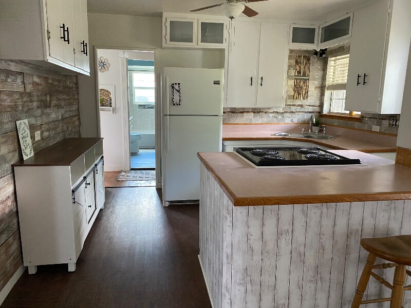 Property Id: 2224148 Charming, roomy family home with big windows, hardwood floors, ceiling fans,barnwood wall in kitchen, attractive accent walls in large living room, garage with utility room, privacy fenced back yard. One small dog will be considered. Very close to schools and town. History of stable work history and monthly income of approximately 3X monthly rent. Optional Rebate program available with information provided at appropriate time.
