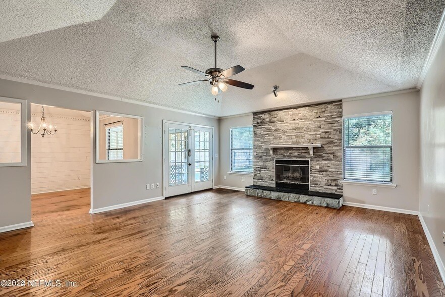 Fully furnished pool home in a desirable Mandarin neighborhood with 3 BR/2 BA. Upon entering, you will fall in love with the spacious living room featuring a cozy fireplace and abundant natural light streaming through the windows and French doors. These doors lead to a gorgeous backyard with an inground pool, perfect for lounging during hot Florida days. The expansive kitchen boasts tile flooring, stainless steel appliances, a beautiful backsplash, and ample cabinet and counter space. The primary bedroom offers plenty of space and a luxurious en-suite bathroom with a free-standing tub and striking black tile flooring. Rent includes yard & pool maintenance. This home is conveniently located near local schools and just minutes away from popular restaurants, shopping, and more. Internet available with router with $100 per month.