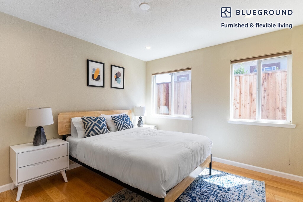 Show up and start living from day one in Cupertino with this sophisticated four bedroom Blueground house. You’ll love coming home to this thoughtfully furnished, beautifully designed, and fully equipped Rancho Rinconada home. (ID #SFO1519) The advertised rate of $5,190/month is the lowest available price, based on a 6 month(s) and 4 day(s) stay with a move-in date of July 26, 2026. If you’re looking for a 1-year stay, the rate is $5,540/month. Rates vary depending on the duration of stay, season, and other parameters. For exact pricing and additional pricing components, please visit our website and enter your desired move-in and move-out dates. The rate is applicable when billed upfront; it can be higher if billed in multiple payments. Brokers are welcome to reach out. Were you looking for an unfurnished lease? Try Blueground instead and upgrade from unfurnished to furnished living: - Furnished at rates comparable to unfurnished - No setup or furniture costs - save thousands - Move-in ready - save time, just bring your suitcase Designed with you in mind Thoughtfully designed with bespoke finishes, modern furnishings, and a fully equipped kitchen, you’ll enjoy that “I’m home” feeling with this Blueground house. Whether you’re lounging in your cozy living room streaming the latest and greatest entertainment on the smart TV or premium wireless speaker, or getting some well-earned rest on the superior quality mattress with luxury linens, you’ll fall in love with everything this Rancho Rinconada house has to offer. This house also offers in-house laundry. Sleeping arrangements Queen Bed, 63in/160cm Queen Bed, 63in/160cm Queen Bed, 63in/160cm Queen Bed, 63in/160cm Amenities Building amenities unique to this four bedroom house include an on-site: - Dryer - Washing machine - Parking - Pets allowed Arrival and ongoing support The entire house is yours to enjoy! Throughout your stay, you’ll have access to our Client Experience team through the Blueground App. You can schedule additional cleanings, submit maintenance requests, and view our neighborhood recommendations with just a few taps. We’ll share all details upon confirmation of your stay. Other things to note This Blueground house has flexible lease options, allowing you to book it for one month, a year, or more. Pets are welcome, though weight limits and breed restrictions apply and may incur fees. Parking is offered based on availability and is subject to a fee. Please keep in mind that this is a walk up building. We take great pride in ensuring every photo displayed is shot in our own units with our actual furnishings. That said, we regularly refresh our decor and furniture arrangement, which may differ from what’s pictured. [SI]