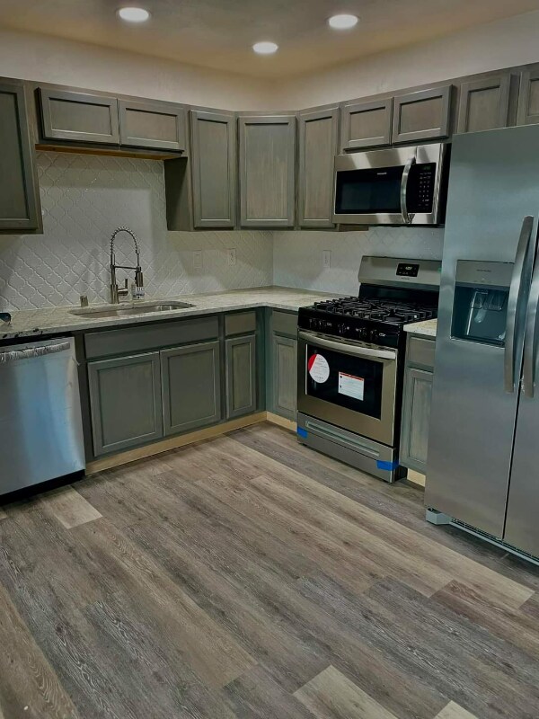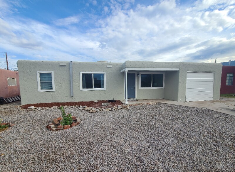 Property Id: 1000181 This 3/2 is fully remodeled! From the upgraded kitchen and dining room to the living room and bedrooms, this property is very well appointed. Stainless steel appliances, granite countertops, tiled bathrooms and hard surface flooring throughout. This home has two separate living areas, making it a great space for entertaining! Its large rocked back yard and covered patio are perfect places to enjoy the Land of Enchantment's 310 days of sunshine! The home features a one car garage, a storage shed in the backyard, and includes a washer and dryer in unit.