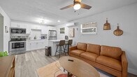Welcome to The Retro Retreat, your luxurious mid-century modern getaway in the trendy Seminole Heights neighborhood close to everything Tampa has to offer. This chic home features 1 spacious bedroom, a fully stocked kitchen, comfortable living room, Keurig machine, full bathroom, and Smart TV. Kick your feet up, take a deep exhale, and relax knowing you’ve just entered into your peaceful home away from home. A twist of 60’s - 70’s decor adds a swanky style to this modern home, creating the perfect ambiance for those who love luxury. The Retro Retreat is ideal for a solo or couples trip looking to escape the day-to-day hustle. Rest and recharge while enjoying the Florida sunshine. The open floor plan includes a relaxing living room, spacious bedroom, full bathroom with tub and shower, and a cooking lover’s dream kitchen with a marble countertop island that doubles as a work-from-home space. The queen-sized bed with a comfortable memory foam mattress ensures a restful sleep. Bathrooms are stocked with shampoo, conditioner, body wash, hair dryer, and extra towels. The home features an incredible set-up for children, including a Pack N’ Play, high chair, baby bath, sheet set, and silicone plate, fork, and spoon. There is plenty of free street parking in front of the house. A short Uber ride of about five to ten minutes will get you to Busch Gardens, Downtown Tampa, Channelside, Armature Works, Hyde Park, South Tampa, The Port, Tampa International Airport, Lowry Park Zoo, The Aquarium, Raymond James Stadium, Amalie Arena, The Straz Center, and much more. This house is very centrally located in the historic and trendy neighborhood of Seminole Heights, known as the foodie district of Tampa. Guests can easily walk to local restaurants, coffee shops, and bars. Florida's tropical environment may occasionally introduce local wildlife, including insects. The home is well maintained and treated regularly to reduce bug encounters, but occasional sightings may occur. The property includes a main bungalow located in front of it, providing complete privacy as your 1-bedroom home is detached. Do not park in the driveway, as it is dedicated to the main home. Enter with your personal smart lock code sent after booking. Quiet hours are from 10pm-8am. Smoking inside the home will result in a fee for odor removal, duct cleaning, and furniture cleaning. Parties or events are not allowed unless previously approved. Be considerate of neighbors, especially during quiet hours. The marble countertop island serves as a work-from-home space, complemented by high-speed Wi-Fi.